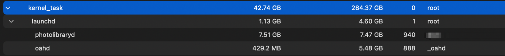 - kernel_task reported 284 Gb written out through Activity Monitor