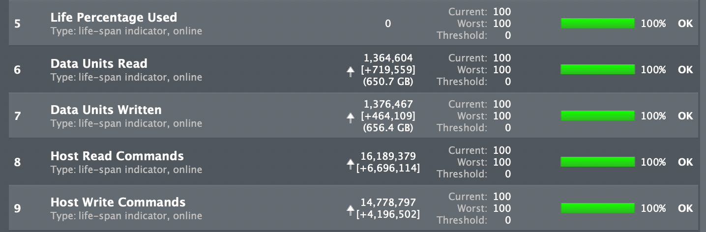 Additionally, it is highly unlikely that the current Apple SSDs support 3000 P/E cycles count per cell, most probably they internally based on some kind of TLC 3D NAND and support 1000-1200 P/E cycles per cell.