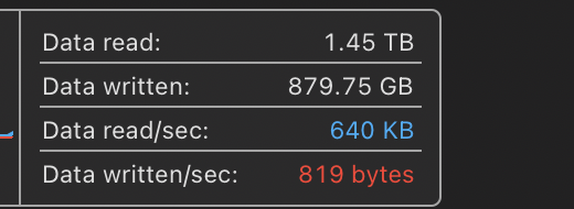 I wish there was a way to disable Activity Monitor because I have this thing at the back of my head that's wondering, how much RAM am I using right now? How much SWAP is being used? How many bytes have been written to the SSD?