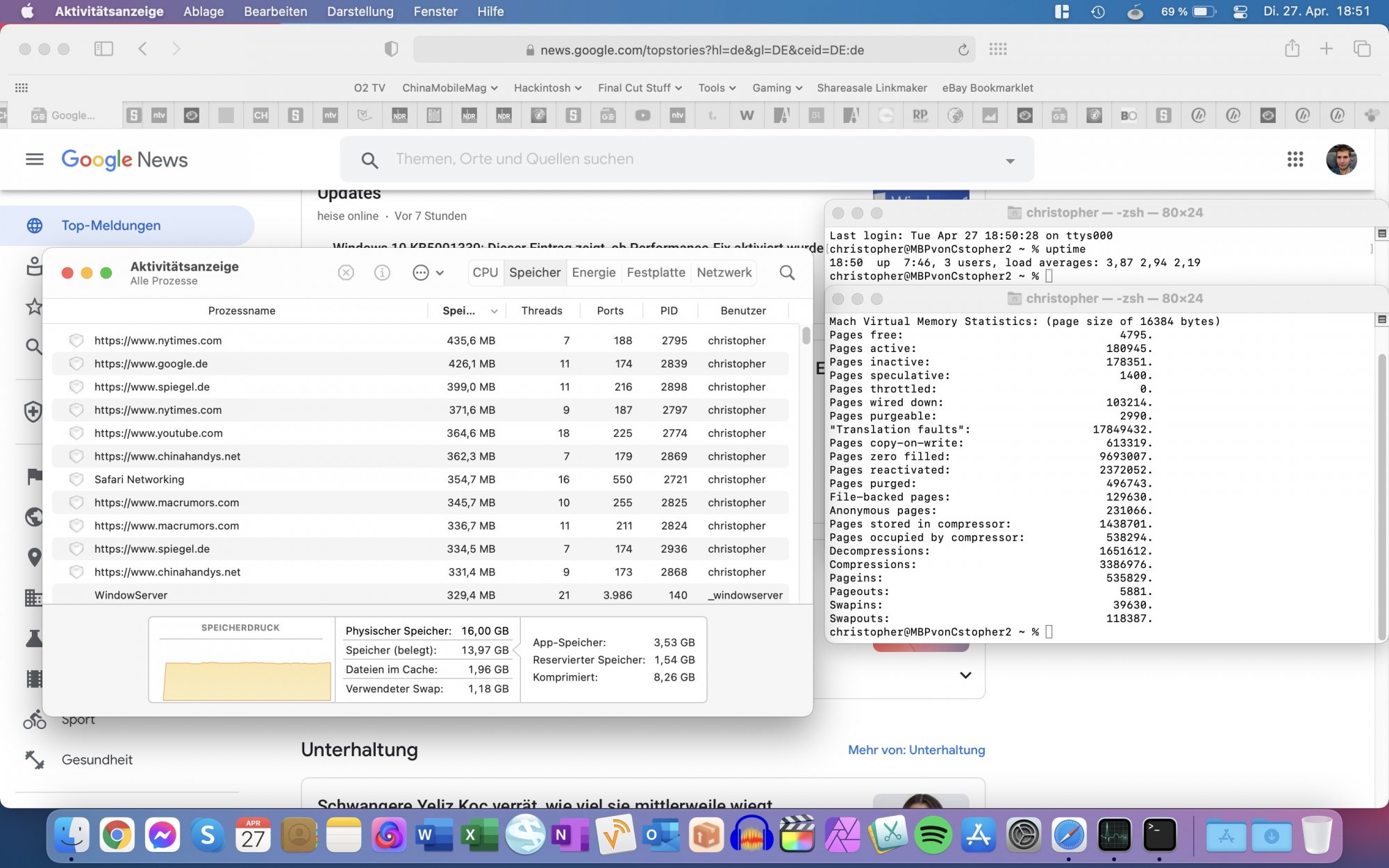 Definitely switching from Safari to using Brave with Auto Tab Discard - as I do a lot of intensive browsing for software development (I regularly have 50+ tabs open at once), using Safari while having all my other apps open would cause Safari Web Content (Cached) to be written to SSD swap memory like crazy. Additionally, as all Safari tabs were more or less kept in memory (even if I closed them or didn’t use them for long periods of time), this in itself put immense pressure on my 8GB of RAM and my kernel_task writes were regularly reaching 400GB+ in a single day after just doing what I consider to be my normal workflow.