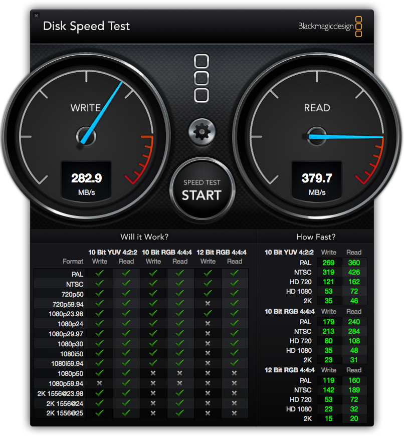 Could you run the BlackMagic speed test on the (now standalone) SSD, and let us know what kind of speeds it gives you?