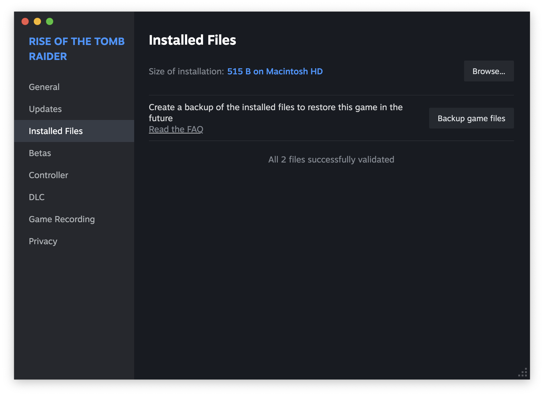 Oh, I get an active Install button on Steam for Mac, even though the games don't have a Mac version and no WINE compatibility exists.Rise of the Tomb Raider is showing 500Bytes to install.. Doesn't actually install.