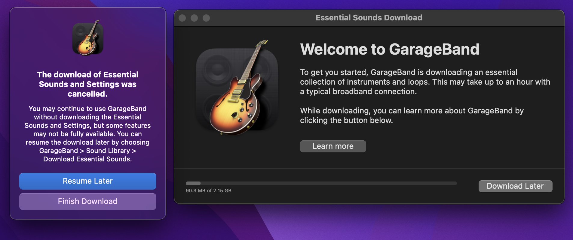 The other day I deleted a bunch of extraneous files that I do not need, including the so-called GarageBand "Essential Sounds" (about 2GB). But, unfortunately, I discovered another facepalm Apple developer decision/oversight just now when I went to use GarageBand to edit an existing audio track. Upon launching, without asking, it starts to download the Essential Sounds again and there is no option to "do not download" - you can only pause it and it will pick up again the next time you launch GarageBand. This is absolutely asinine. Is there a terminal command that will stop GarageBand from checking if the Essential Sounds library is there? I simply can't believe this is not a UI preferences option.