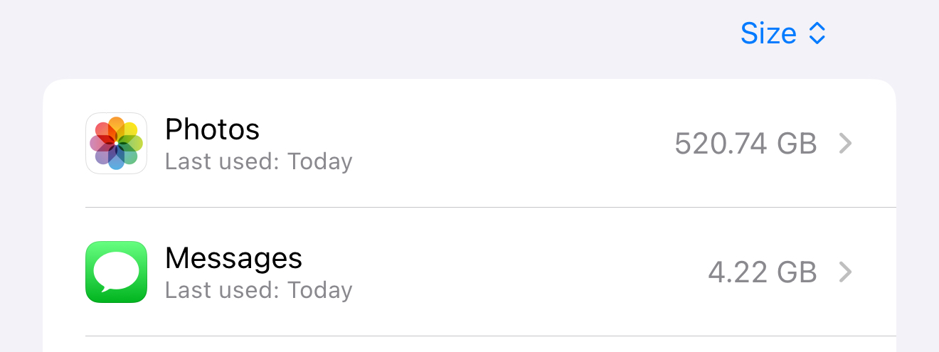 I did a transfer via cable, TB4 and everything went fine. All items appear to have transferred. However I went to confirm old phone vs new and see a big discrepancy I can’t understand. Anyone have some insights?