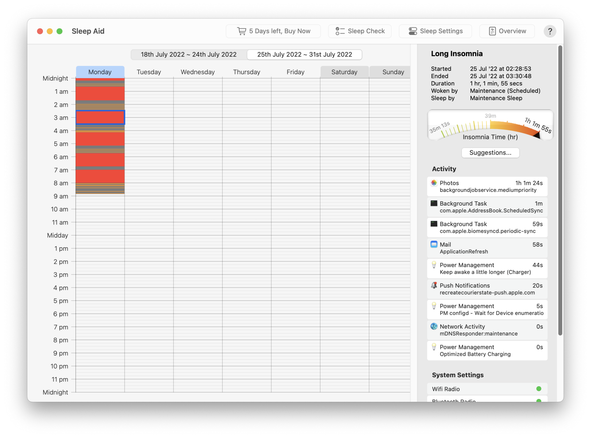 I've been trying to app 'Sleep Aid' to try and identify why my MacBook might be keeping the display powered up, and noticed Photos is pretty much doing something constantly... all of the red sections on image are the same.