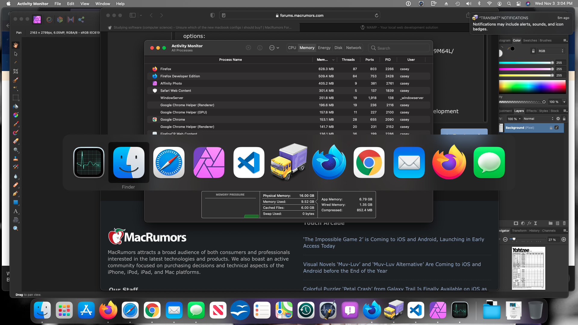 Surprisingly, the memory usage decreased after opening an image editor, Affinity Photo, and FTP app, Transmit.