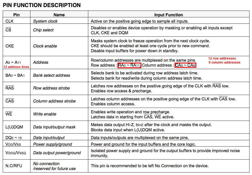 0x0C = 12 row addresses, 0x09 = 9 column addresses, 0x04 = 4 banks on SDRAM device.