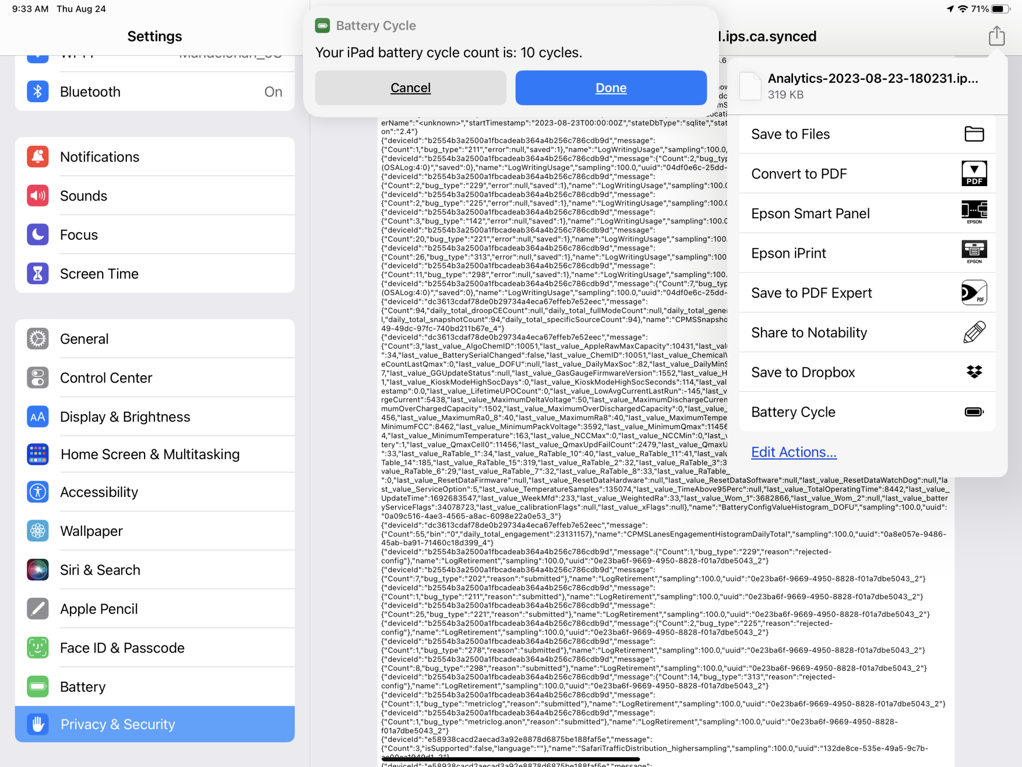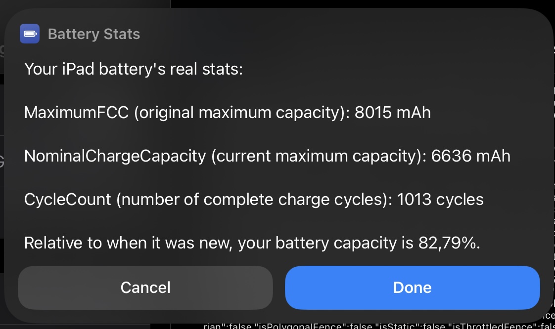 These logs contain quite a lot information, but using Apple Shortcuts you can get the relevant data quite comfortable - e.g.. this is from a 2020 11” iPP: