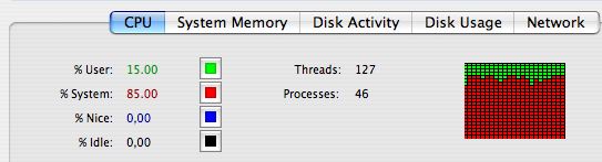 When I go into the Activity Monitor, my CPU is running 100%, and 80%+ is coming from the System. I've tried to sort the processes by how much they use, but no single process is taking up more than 5%, and most of them read 0%.