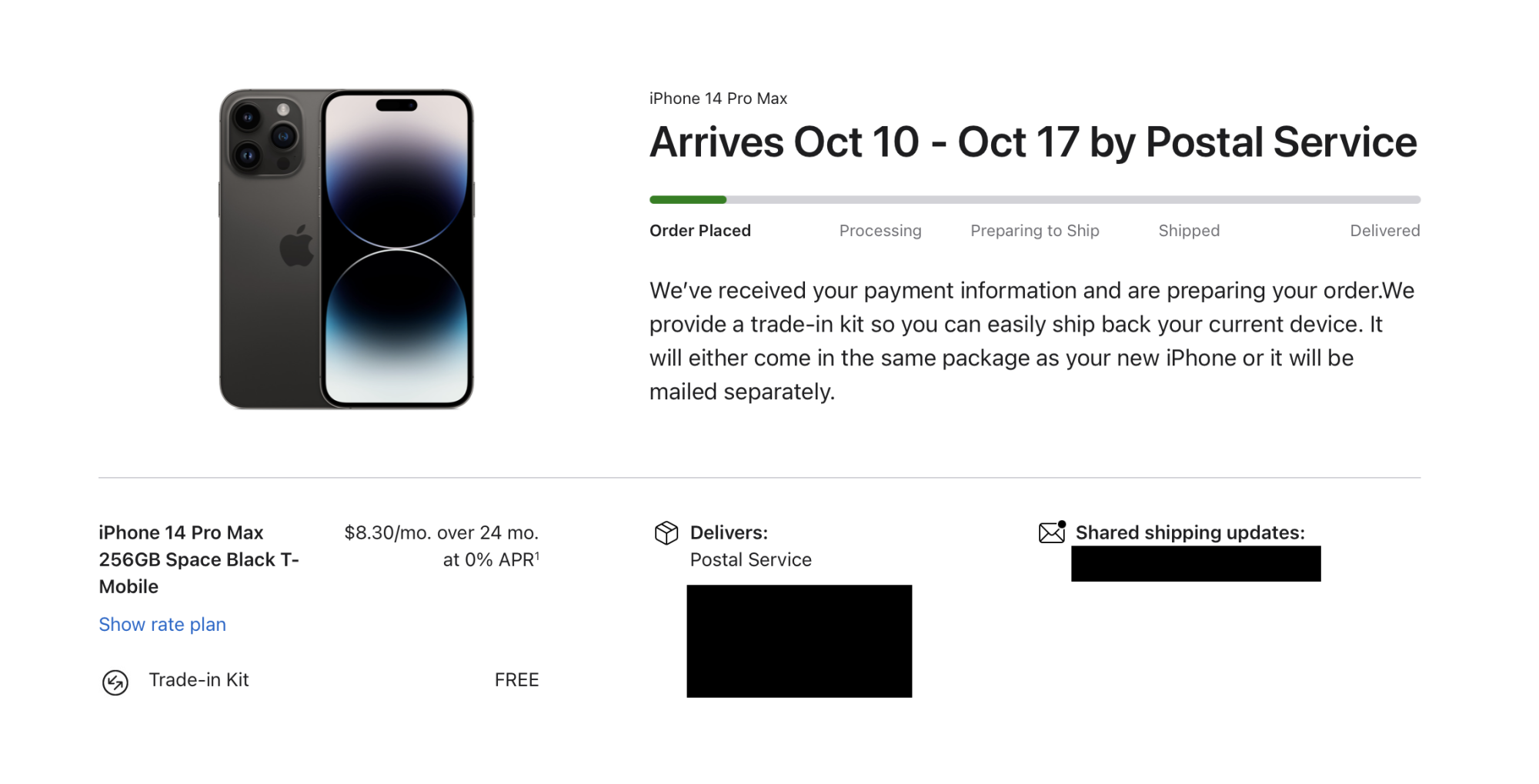 This happened over and over with me, too. It finally went through on about the fifth or sixth time with the first card we had tried. She had to input everything all over again.T-Mobile rep finally called me back to do JOD order. Tried to process my card for pre-authorization and declined (supposedly). We tried 3 other cards (4 total, 4 different credit cards, 4 banks) and they all denied. I said there’s absolutely no way they’re all getting denied; everything is correct. So they said we’ll call you back when we know it’s working again, there may still be issues. SMH. I did put an order in through apple, 10/3-10 delivery. I’ve been thinking about getting off JOD and doing trade in with apple each year as the trade in values have been so high. We’ll see what happens.