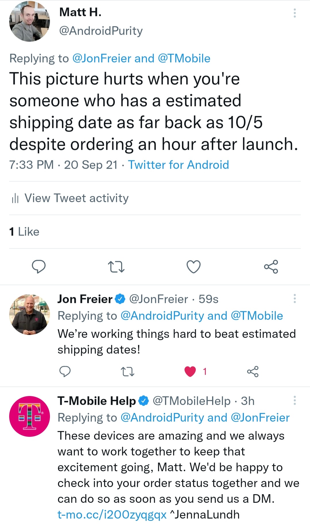 T-Mobile Jon Freier responded to my tweet and check out what he said just now...