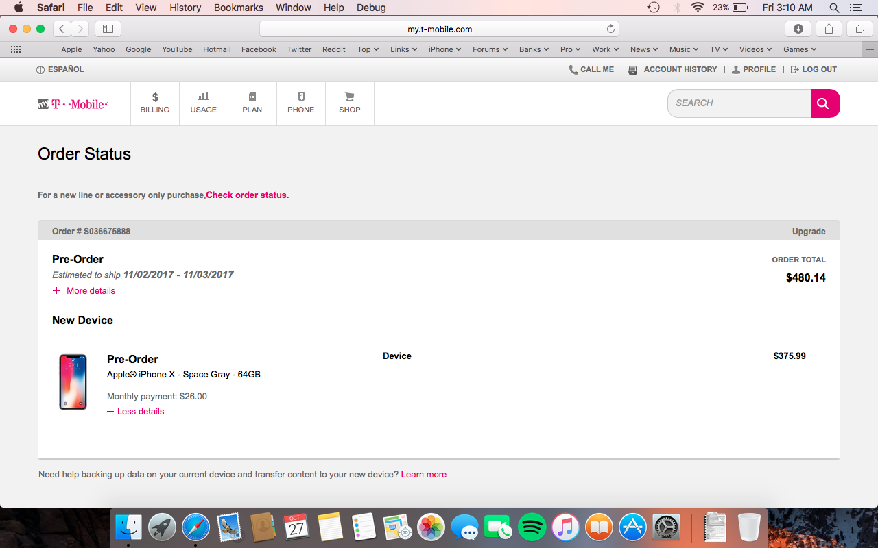 It’s showing $30 monthly payment, which would mean no credit. I was worried, but I just got an email confirmation of my order that shows the $12.50 a month credit. The EIP emails were instant, but the order confirmation email took about an hour.Same, but this is normal. The $300 isn't coming directly off the iPhone X its coming as a $12.50 discount for 24 months.