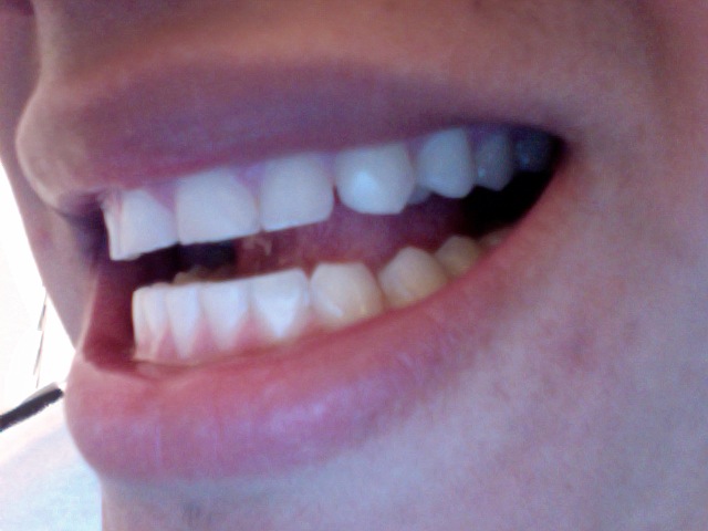 The primary area is the gap in the 2 front upper teeth. It's annoying me. Also, I have an overbite. I can feel those 2 front upper teeth with my tongue and it bottom of those 2 front upper teeth feel grittier than the rest, plus the back/inside of these teeth have a concave feel to them. I once visited a dentist when I was 18 (3 yrs ago) and he told me that I must be grinding my teeth at night and the kicker was, he said by the age of 23+ I wouldn't have those teeth anymore. I went to another dentist for a 2nd opinion and told me the other dentist over exaggerated, nevertheless still on my mind.