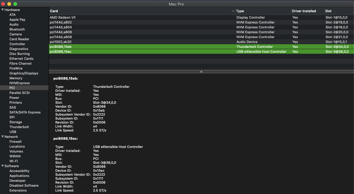 pci8086,15eb thunderbolt controller slot 3 @34,0,0