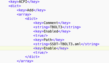 here) and using DSM2's firmware, I have flashed the card (only the chip with the blue dot) and put at jumper on the THB_C header (3 to 5). I then proceeded to modify my OpenCore configuration to incorporate DSM2's version with Martin LO's version (