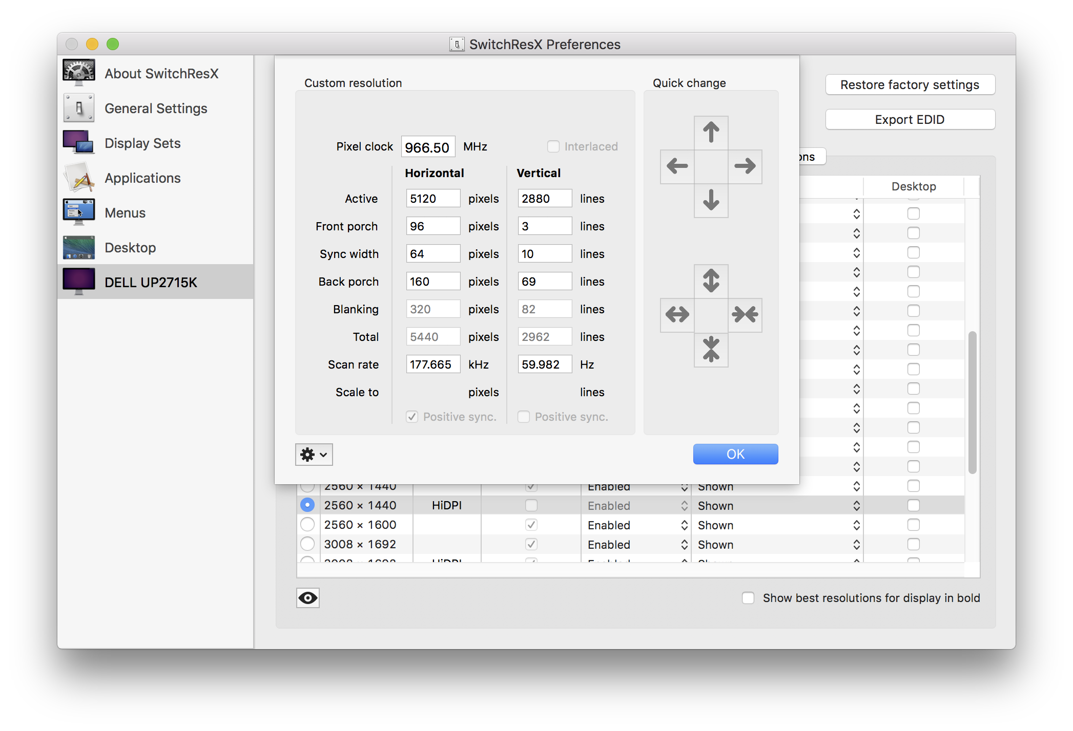 When i double click on current resolution in SwitchResX...... Nothing happens.