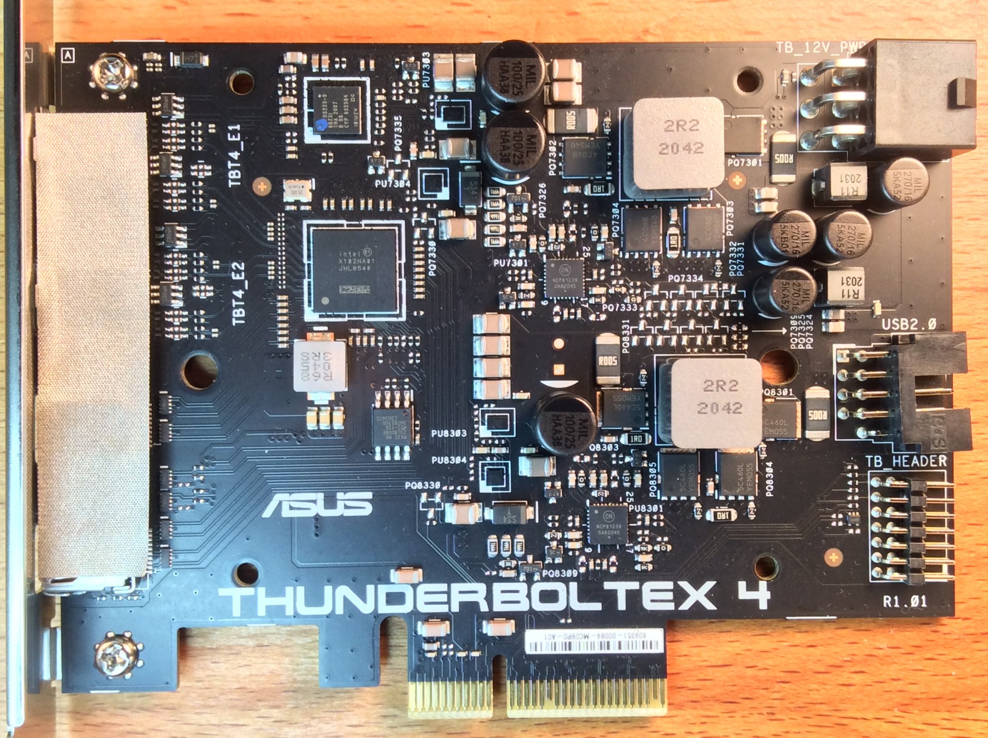 I connected the USB 2.0 header to an internal USB 2.0 hub, the PCIe 6 pin power to the power supply, but no Thunderbolt header connection or jumper (means Force Power is not required)