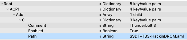 - without SSDT enabled in the config.plist, it shows up as generic Gigabyte Titan Ridge 2.0 TB3 card... I have remap the ACPI path on both SSDT that comes with Martin Lo's package and also one I created from HackinDROM. The new ACPI path for slot-3 GC-Titan Ridge is "PCI0.IOU2.I2PS.PPB2.PSX3"(screenshot of IORegistryExplorer is attached). I am also attaching updated version of Martin Lo's SSDT-TBOLT3.aml and HackinDROM.aml...