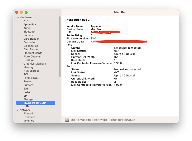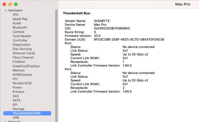 With this setup, I was able to use Martin Lo's 0.79 package and it showed up as "Apple Inc." with "40 Gb/s x1"!!!!
