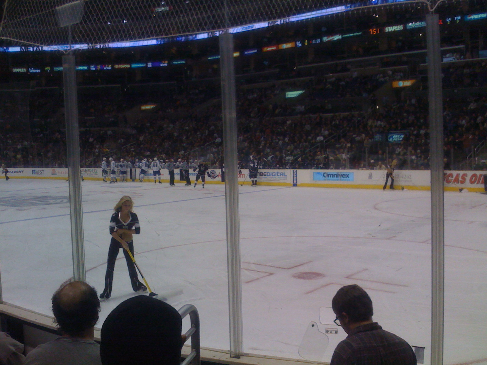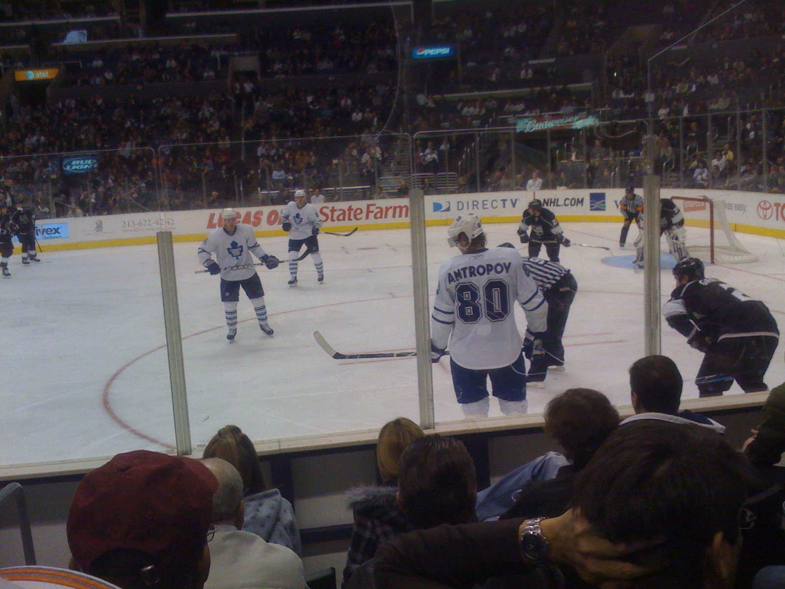 What a game! The first period was kind of eh, but the second and third were great. Leafs won 3-1. All of the Leafs' goals were scored on the end that we were sitting at, right in front of us.