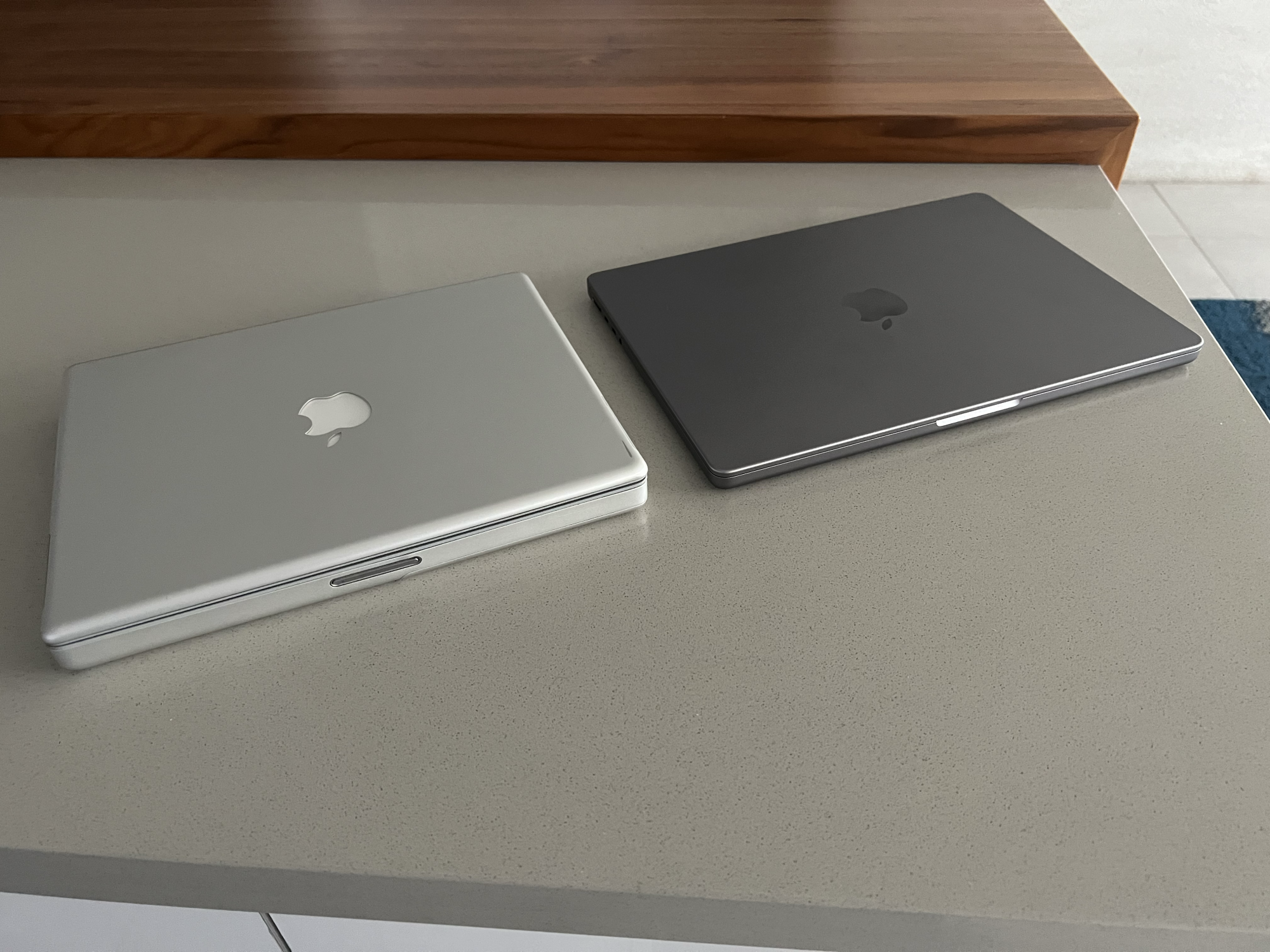 There's something very reminiscent about how the new 14" MBP, so I pulled my first ever Mac Laptop (A 2003 12" PowerBook G4) off the shelf and fired it up.