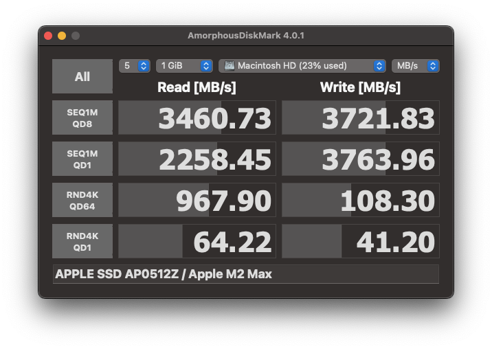Moving to my Studio, the internal (512 drive) is 4800MB/s write, 3400MB/s read, which is ridiculous compared to my previous setup.