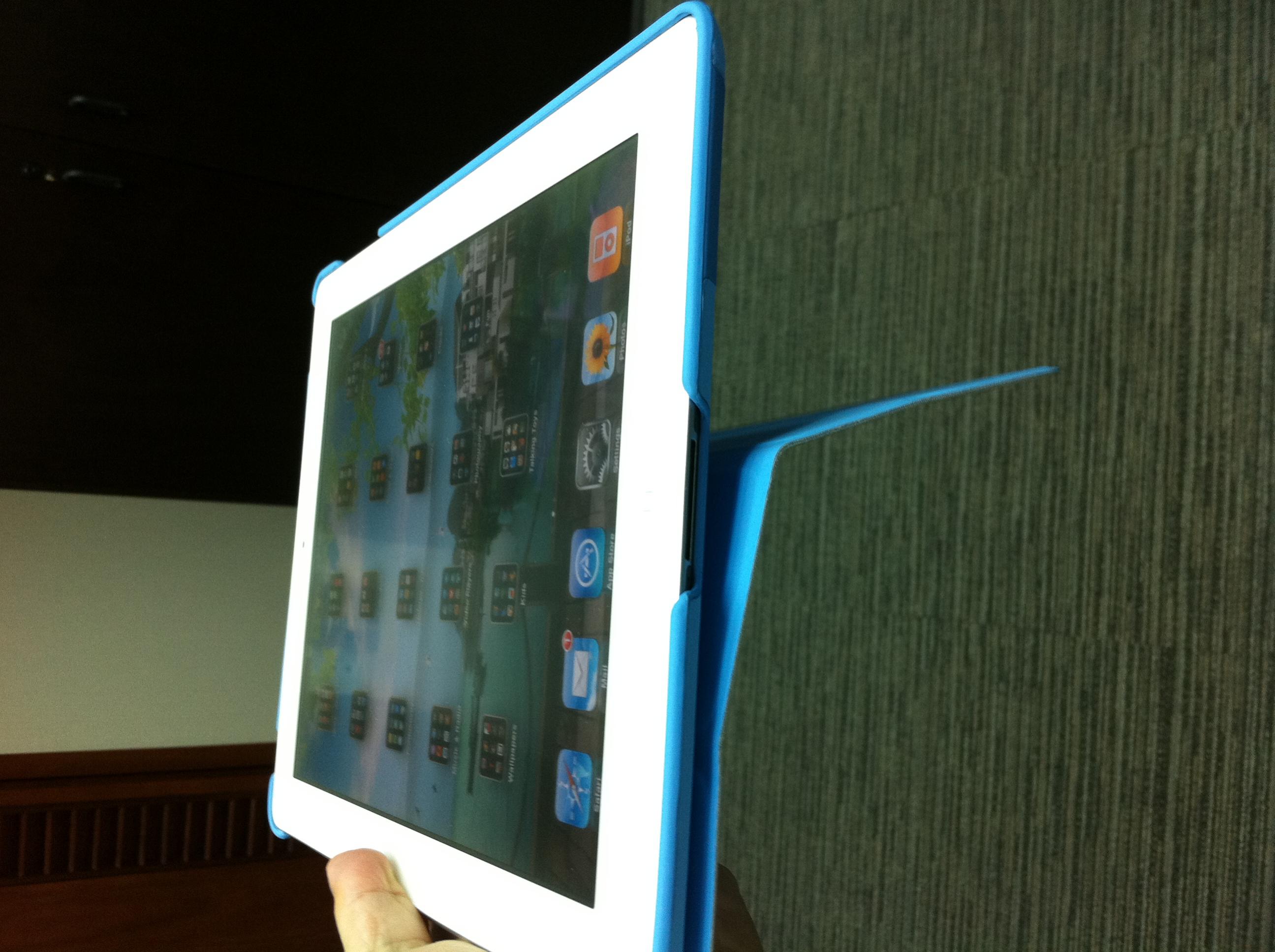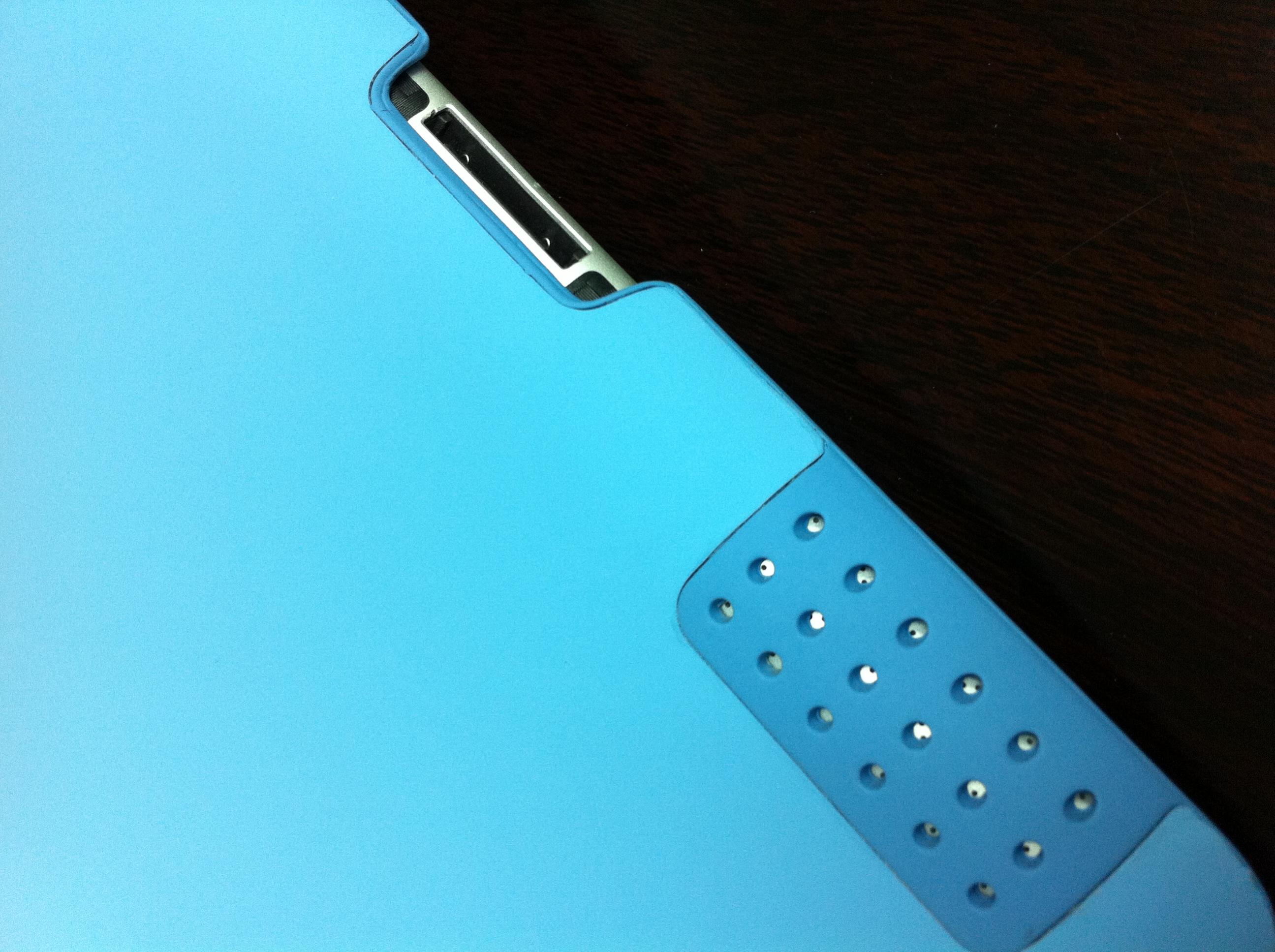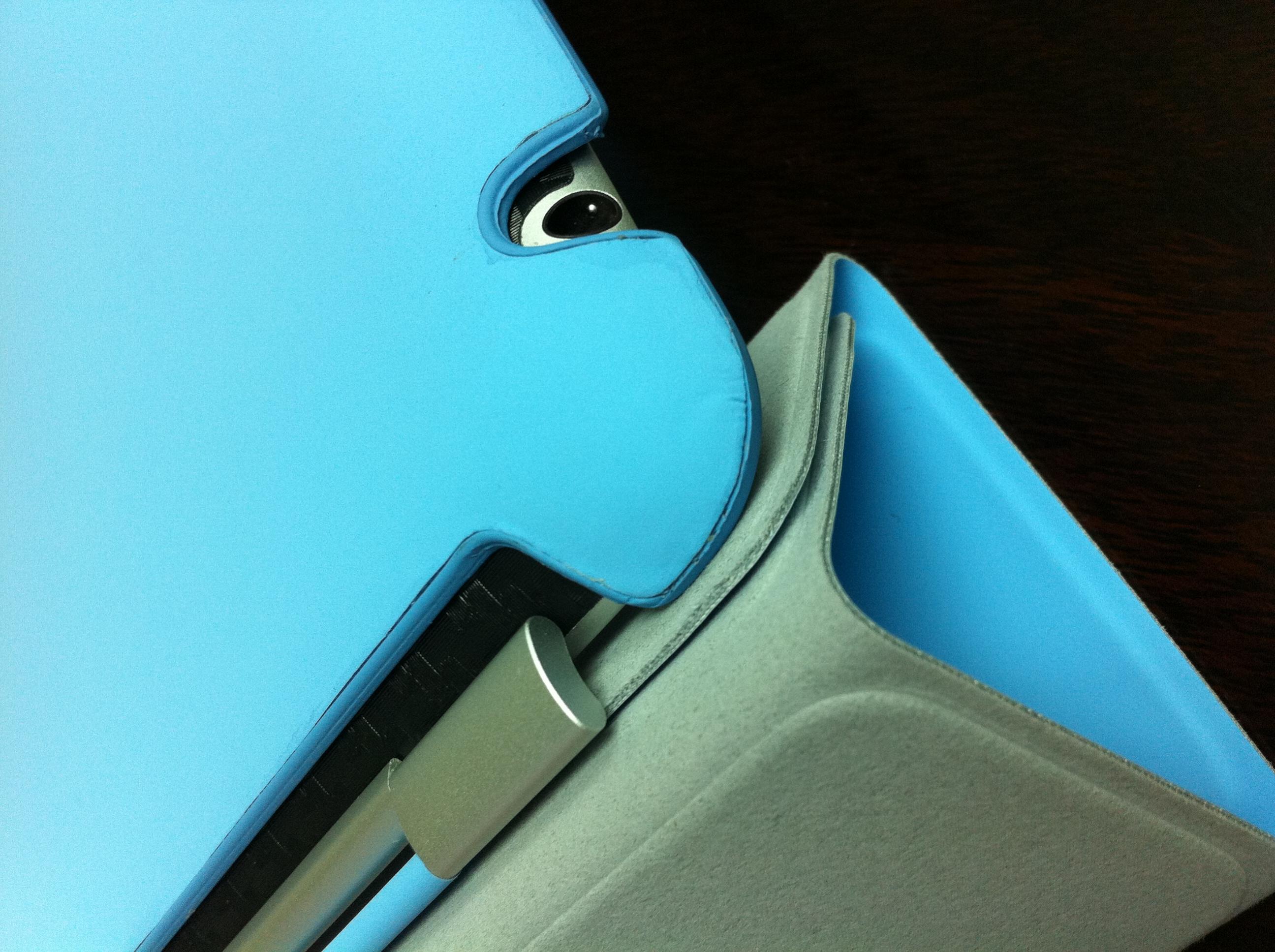 2. It's got this little piece of magnet on the back (where the brand name is) which holds the smart cover up when you flip it back! And the magnet is not so strong and it will NOT affect the sleep/wake function of the iPad. That is the deal maker for me cos isn't that the most annoying thing of the smart cover?