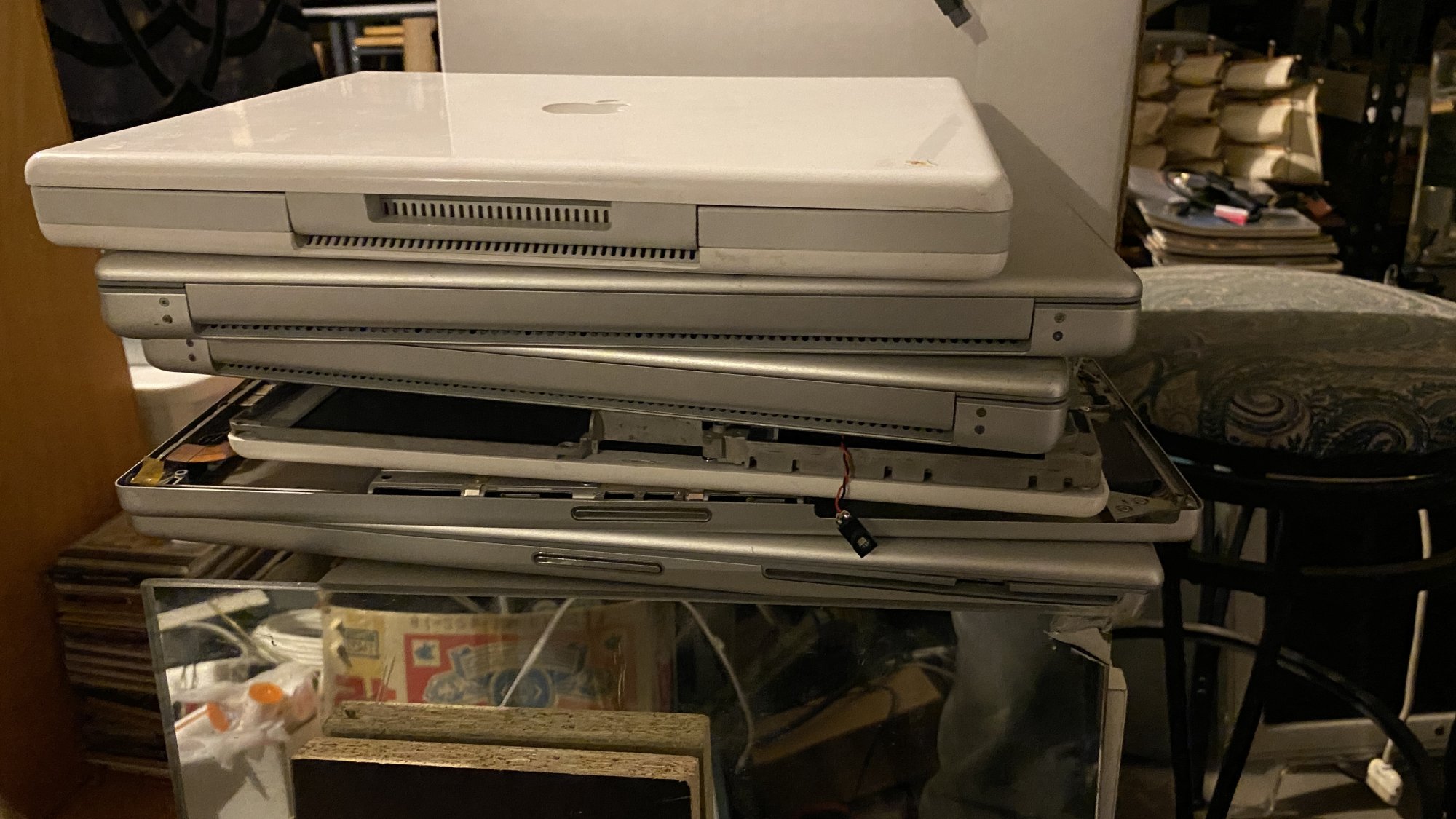 And this is the main stack. Except for the two on the bottom most still work. They just have problems I am not willing to solve (iBook G4 14" needs a new DC-In board) or can't figure out (15" PowerBooks will boot and function perfectly off DVD, but fail to install OS or will crash immediately…both have lower ram slot failures).