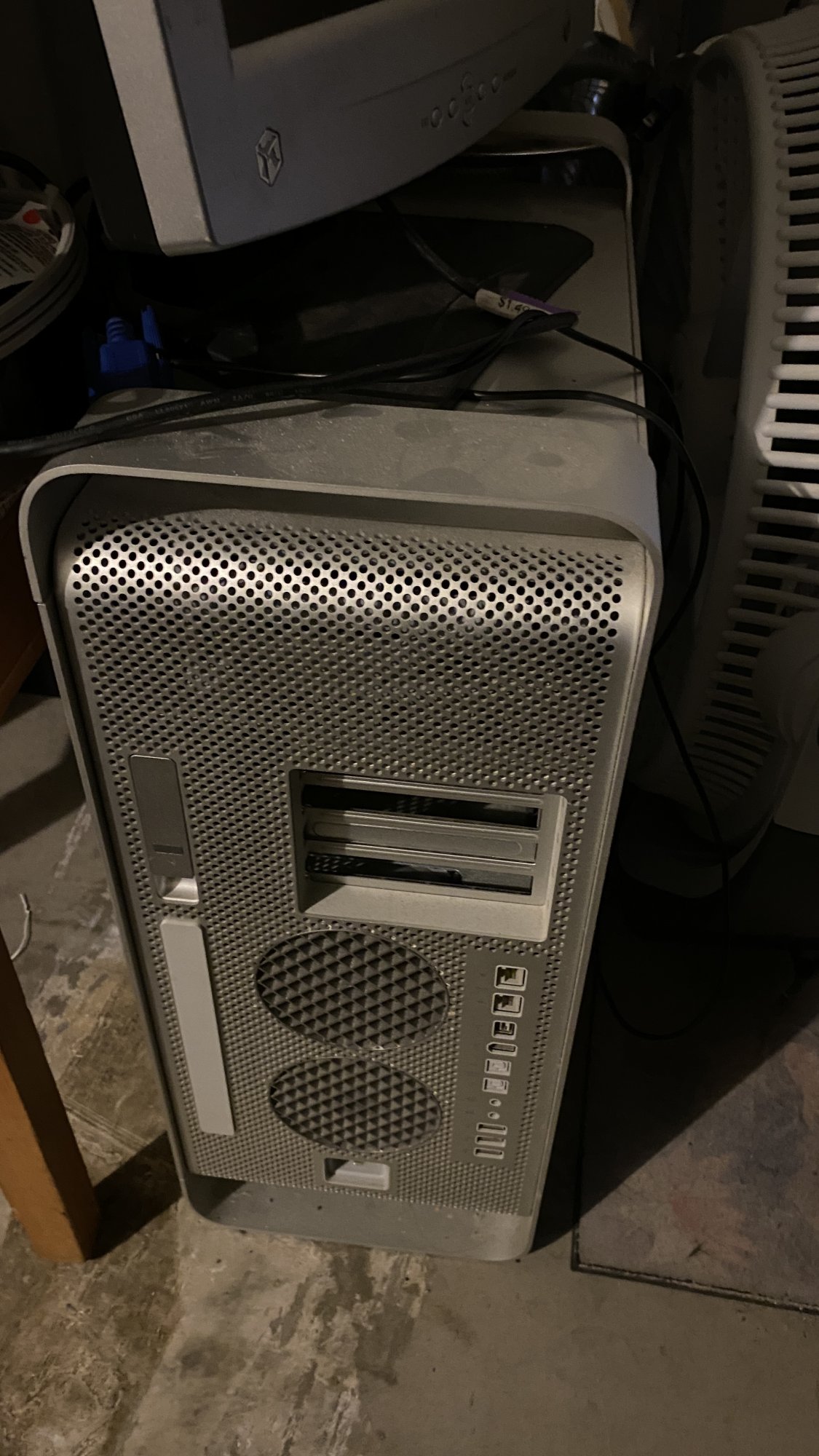 PowerMac G5 quad from goodwill - missing fans, does not power on. I’m hoping I can fix this one eventually.