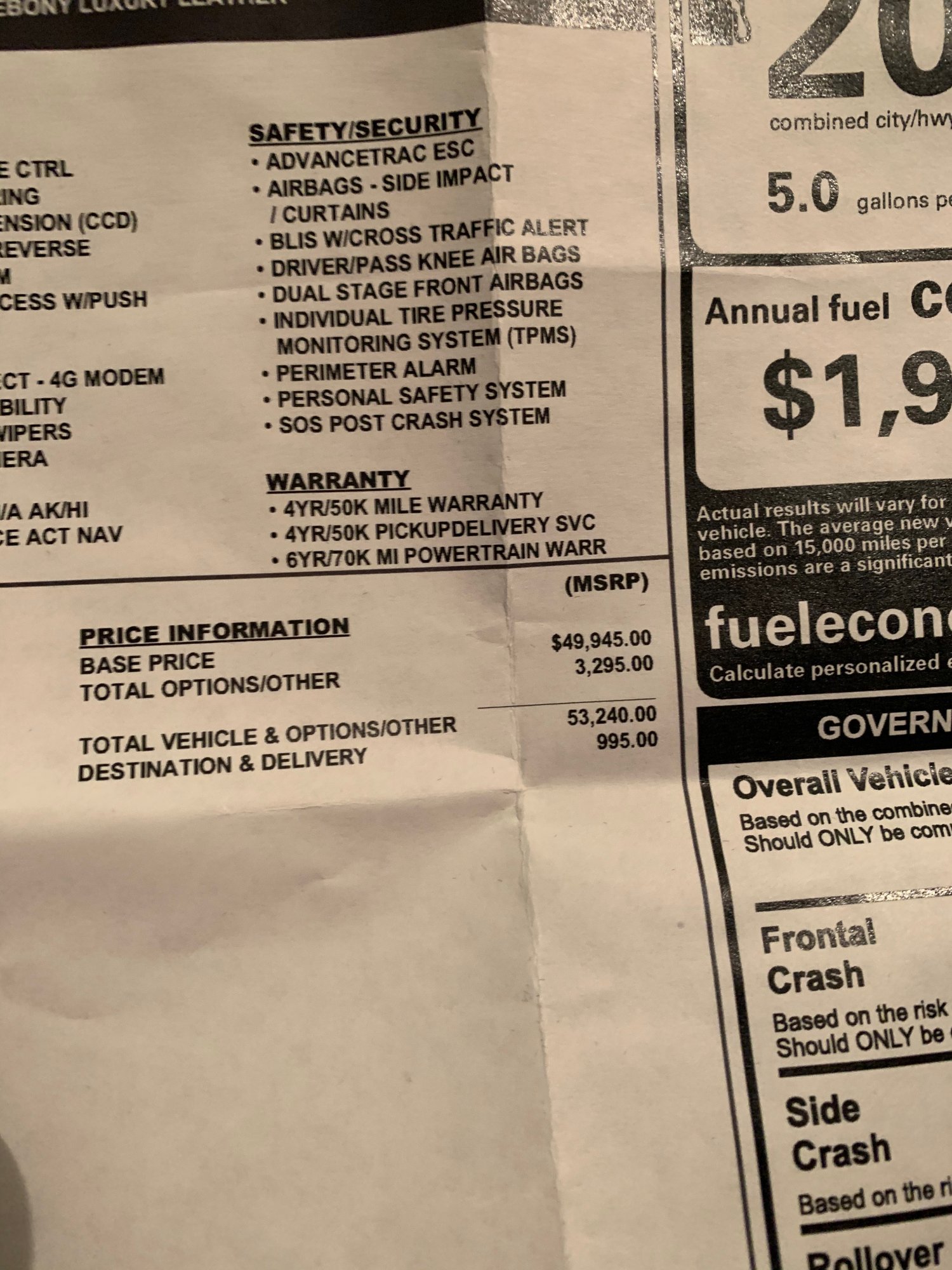 Also, here's the window sticker. Looks like it is the 3.7L, and is pretty much the "base" model. One thing I will say is that, unlike some of the German brands(looking at you, BMW) a base model is still pretty darn well appointed without a lot a la carte options.