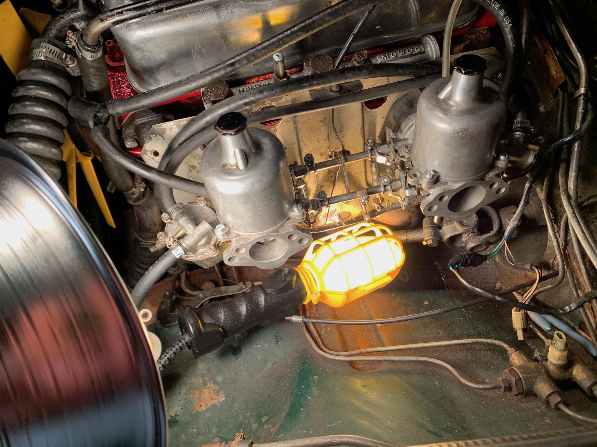 Once the timing was correct-again timing first, then carbs, although the carbs have to be in the ballpark to get the dynamic timing right(BTW, got a steady-ish idle when I screwed the jets down another full turn)-I went to the carbs. I was able to get them synced nicely, then get the idle down to a reasonable number. Once I got the mixture set and reset the idle, I was super happy with how it sounded in the garage. I went in and asked my wife if she wanted to go for a ride.