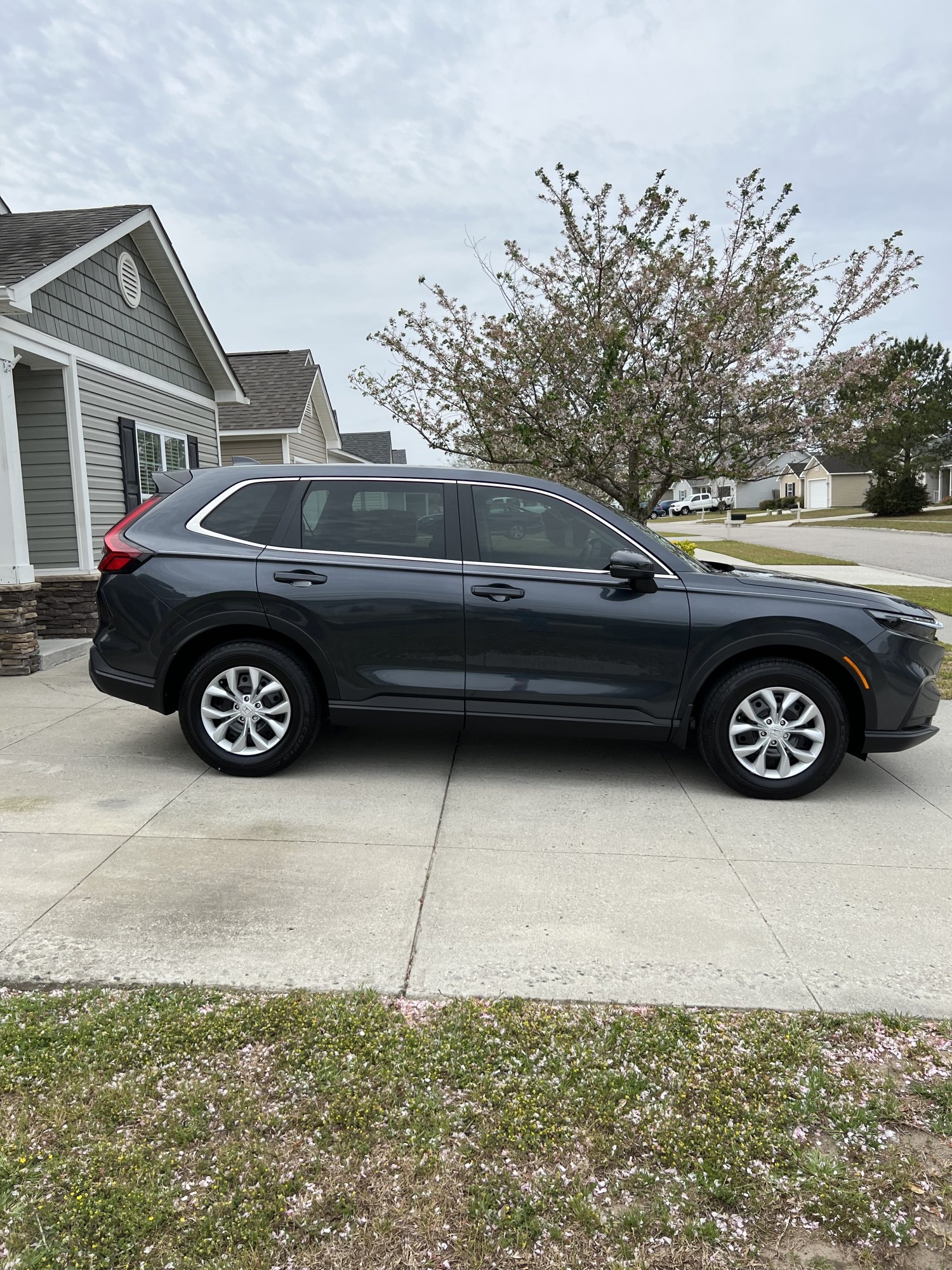 Been a fun month car wise.... On February 28th we were going out for my birthday dinner. We were in our 2020 Civic and got rear ended hard. Insurance said it was fixable. Body shop kept finding more and more damage. Ended up being totaled. So we finally got everything settled on Friday. Went to look at the new Accord EX. They only had 3 all were red and we just didn't like it. My wife saw the new 2023 CRV. So we drove it and really liked it. It's a LX AWD. So far we are really enjoying the higher seating and view. It's a very smooth ride. Color is very nice. Meteorite Grey.