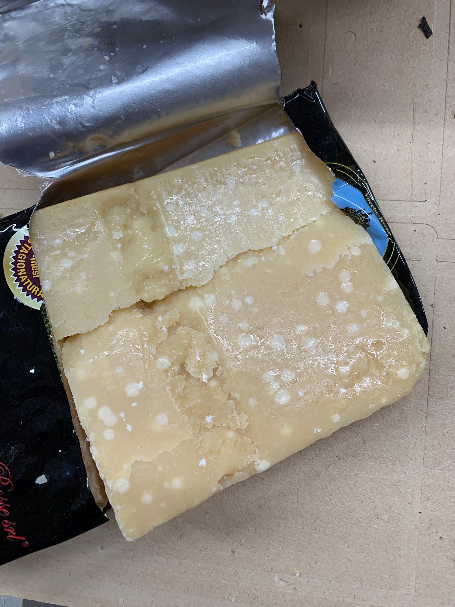 well some time with that 4 year old parm has been good. there is a lot more waste on the rind it is so hard and flavorless pretty much inedible. found this cheese. I cant have cooked cheese and this is great for adding cheese flavor to stuff. I like to jsut eat some on a spoon it is less calories then nut and gives so much flavor. it makes me feel like I am eating really great cheeto's without the cheeto part. https://www.amazon.com/gp/product/B076TPLFFD/ref=ppx_yo_dt_b_asin_title_o00_s01?ie=UTF8&psc=1