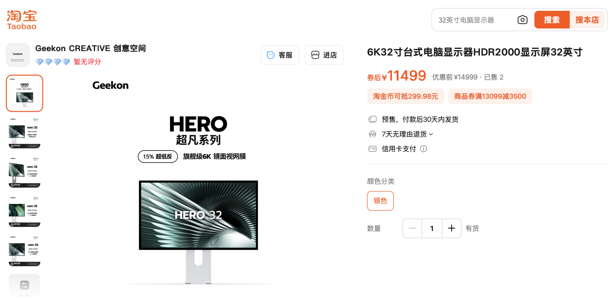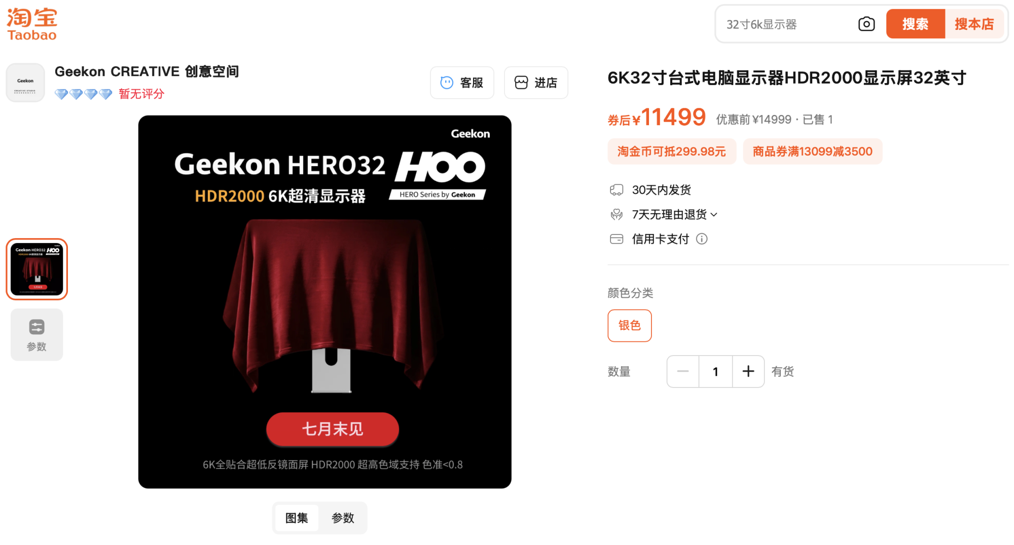 Now it's up (same link as above):Note: In adding Taobao.com links for the Chinese companies, I came across this listing for a high-end Geekon 6K display yet to be unveiled (the graphic says it will be "seen at the end of July"), ¥11499