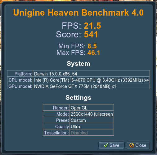 I'll try and get the benchmark things for OSX in a minute, and also do it on bootcamp tonight. I'll keep you updated