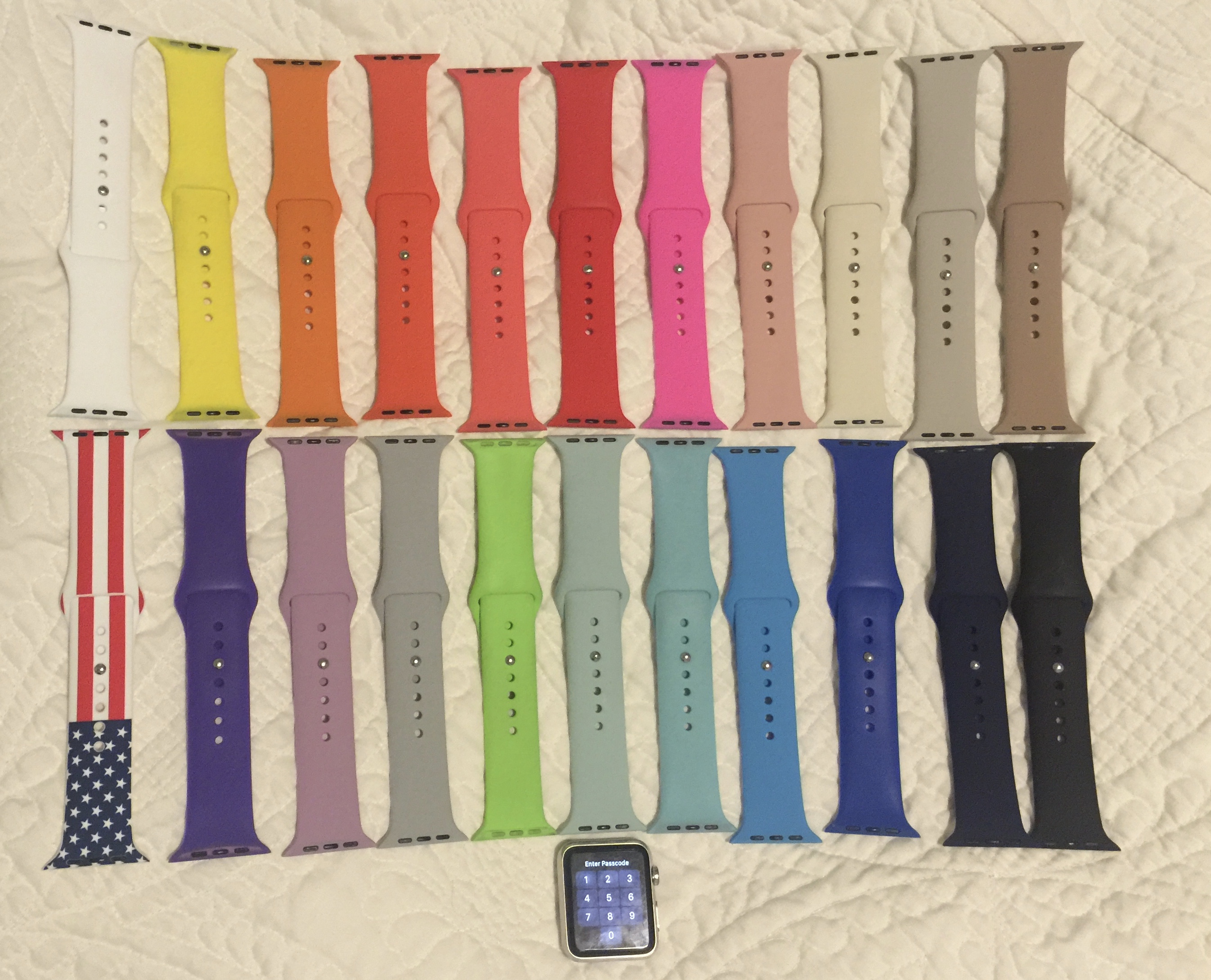 What's your take on their sports band. As you posted right below mine, I only own the red one. I find the pin/hole setup of the MoKo band (at least my red one) to be such that when I'm putting it on, the pin can pop out if I'm not careful. I've not seen a situation where it will do that while wearing the band, but I was surprised that I pushed the pin through through the hole and I was putting the loose strap through the slit and boom it popped off. I can easily repeat that.All MoKo bands except the green one.![]()