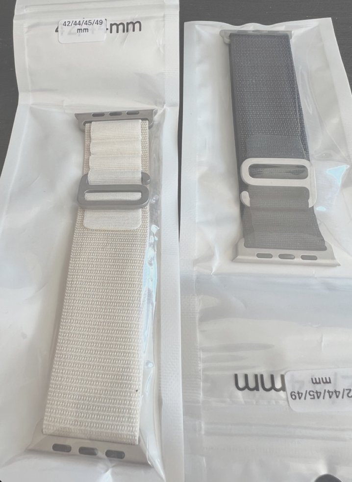 As for the fake Alpine (on the right) I got to compare, it’s close enough to make it awesome for the price of $5 vs $99. The fabric seems cheaper and shiny, giving it a plastic look compared to the nylon. But I may never have thought that had I not seen Apple’s intended look (on the left). Also, the third party color is not as neon as the first party. Lastly, the metal finish looks less rough, as if it’s paint on some regular non-Titanium (which would make sense at this price).