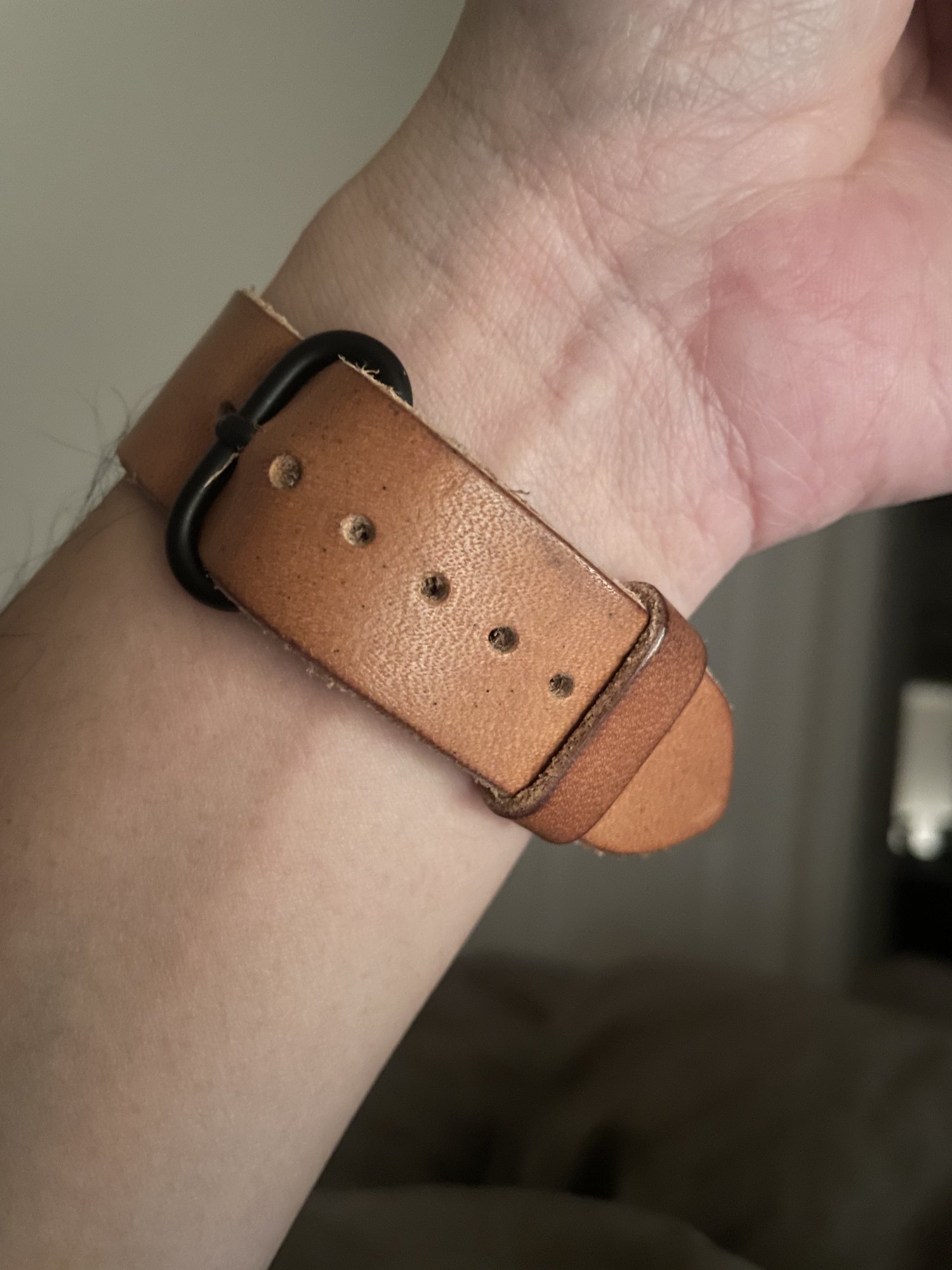I really need to stop buying watch bands for my AWU, lol. Picked up another one from Threaded Leather (in "vegetable tan"). I'd wear it 24/7 if not for gym time and avoiding sweat.