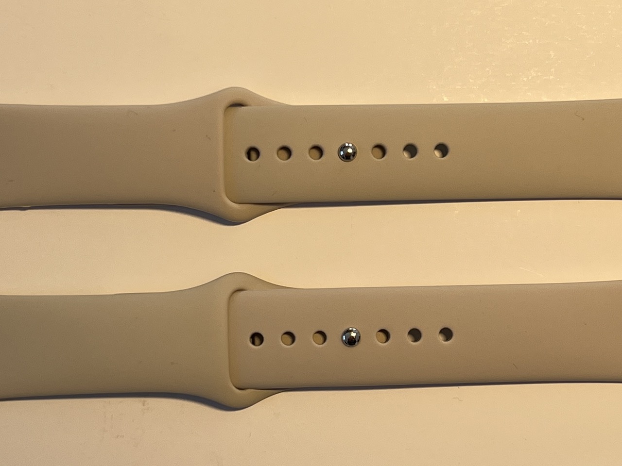 I was curious how the colors compare between an OEM band and the AliExpress knock offs, so I ordered a "Starlight" colored Sport Band to compare with my original.