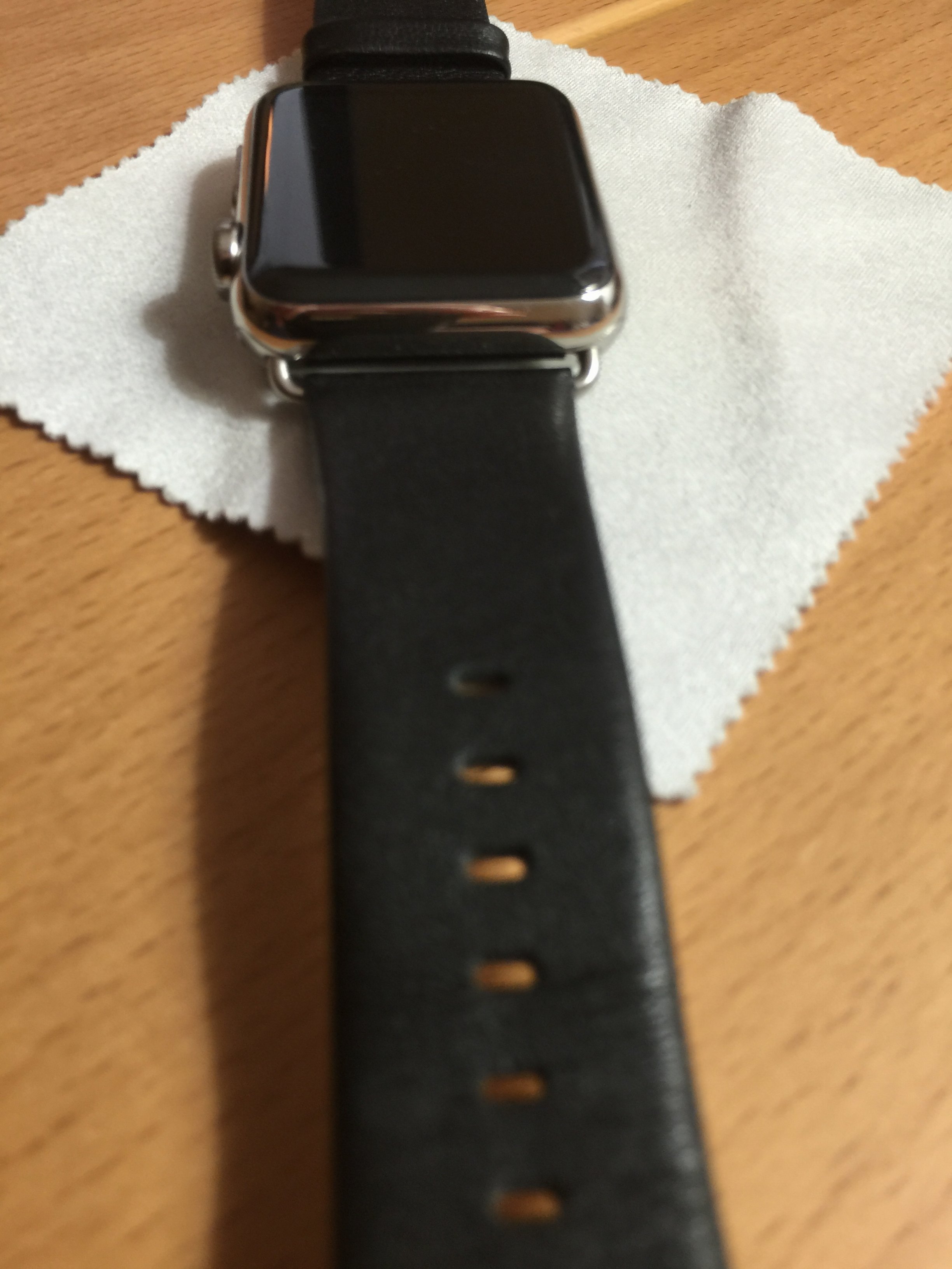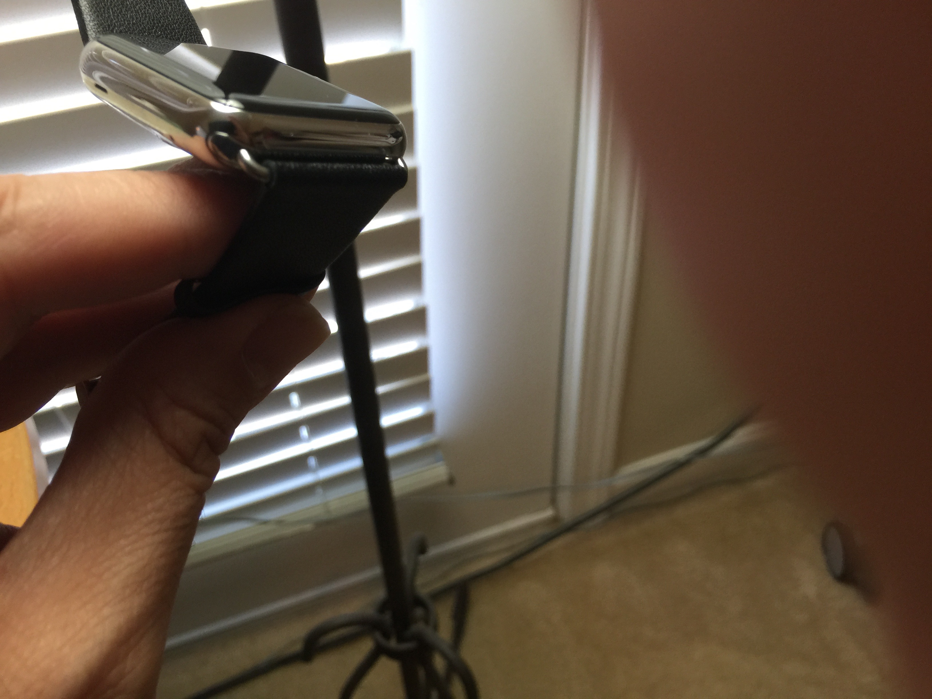 The adapter it comes with is perfect match to the stainless steel of the Watch. It is also a perfect fit. The black leather band is soft, but maybe a little thin, but nice anyways. I will have to see how long it lasts. I have a Black Leather Loop as my main band, but because here in North Carolina it is 100 degrees and very muggy, I would rather ruin a $20 band than a $150 band. I will write a little more of a review in a few days to see how it holds up and if it is still comfortable.