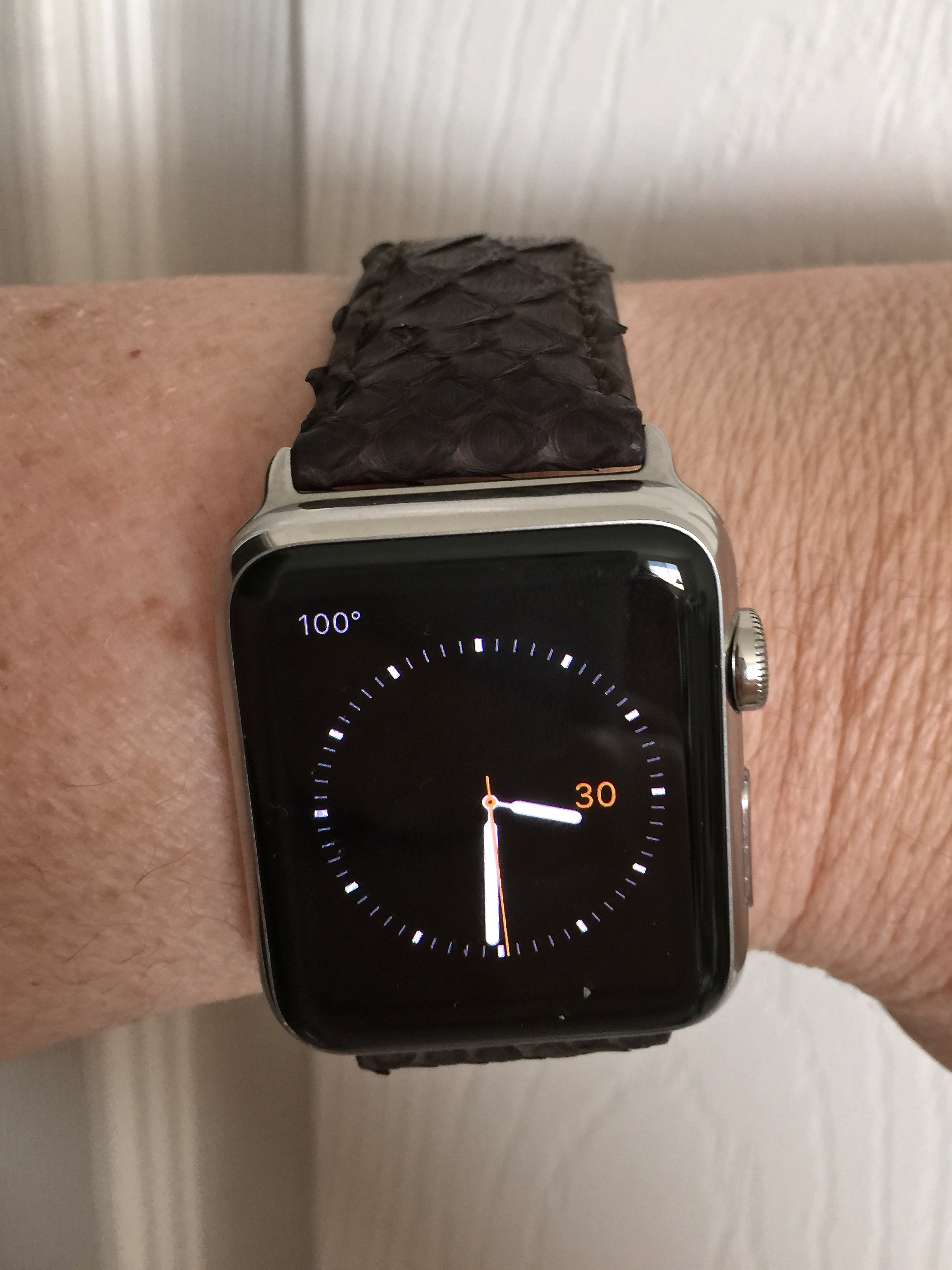 Here's the python band I picked up off ebay. Right now using it with the spring pin adapter for a quick install. Might like it better on the classic adapter though which I tried on after removing the tubes the band came with. I think it's a nice dressy look and is comfortable on, a bit stiff which being new is to be expected. So far I like the brown with the orange dial/date on the Utility face the best. The seller is suppose to send me a buckle which wasn't included and in the meantime have added one of my own. The band comes in several colors. Pretty happy with it.