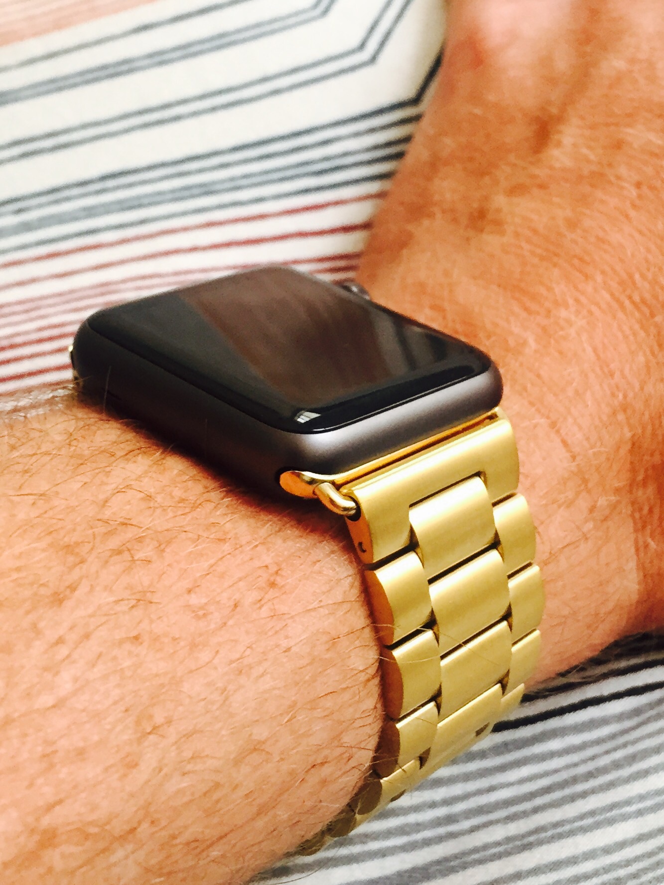 Any chance you can take a photo of the band on the watch still? I would have thought the blue would have looked nice on stainless. One of the color purchases I have yet to make for my SS Watch. The band he sells is pretty inexpensive. What did you think of the quality? Side finish of the leather? At first assumed the adapters on it are the same they sell but maybe not if the band comes packaged with the adapters. Are they polished stainless or matte?