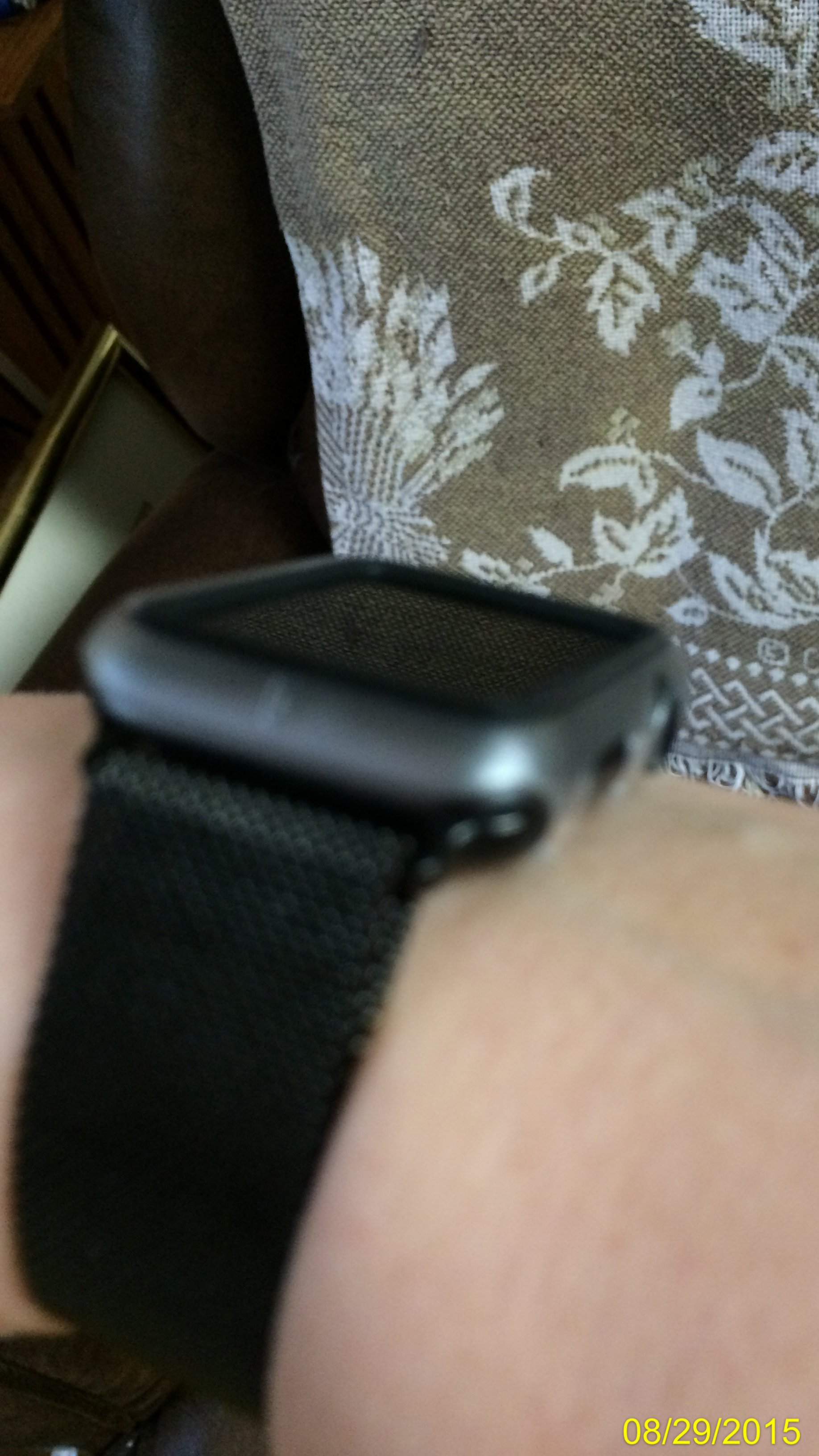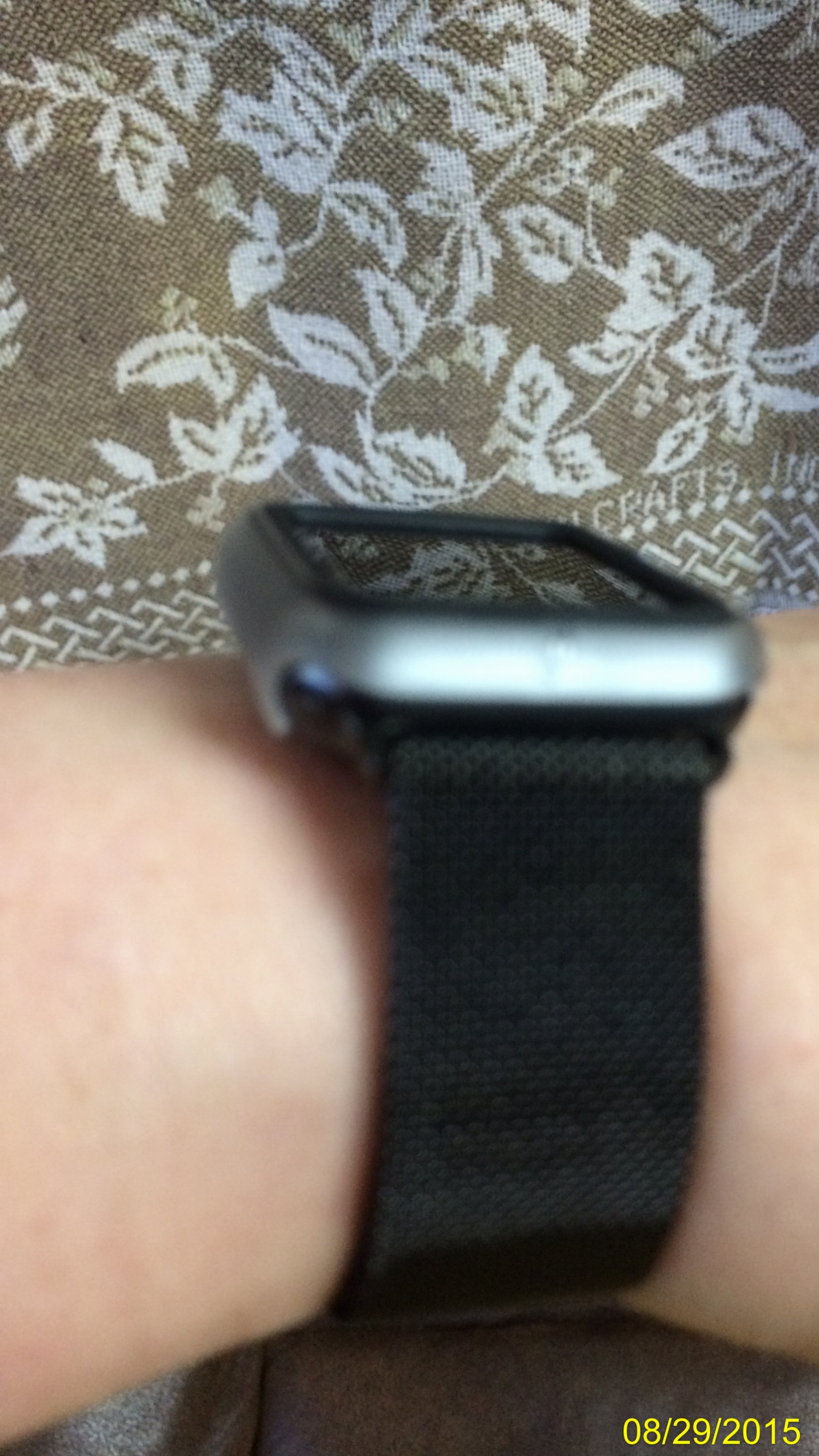 I received my red band today. It is thinner than Apple's sport band thus the fit is a litttle bit looser for me using the same hole I use on my Apple band. There is a slight gap at the end of the adapters. The thing I've noticed most though is the smell. There seems to be some sort of off gassing going on (the smell sort of reminds me of a Sharpie). But for the smell, it is fine. Will post some photos in a moment.