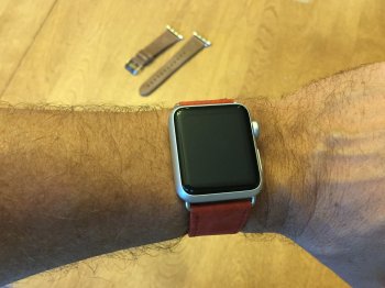 Pad & quill, dark brown. Very impressed so far. More comfortable than the sport band and i love the looks. If I order another in a different color, I might consider the 38 width so that it is a little thinner.