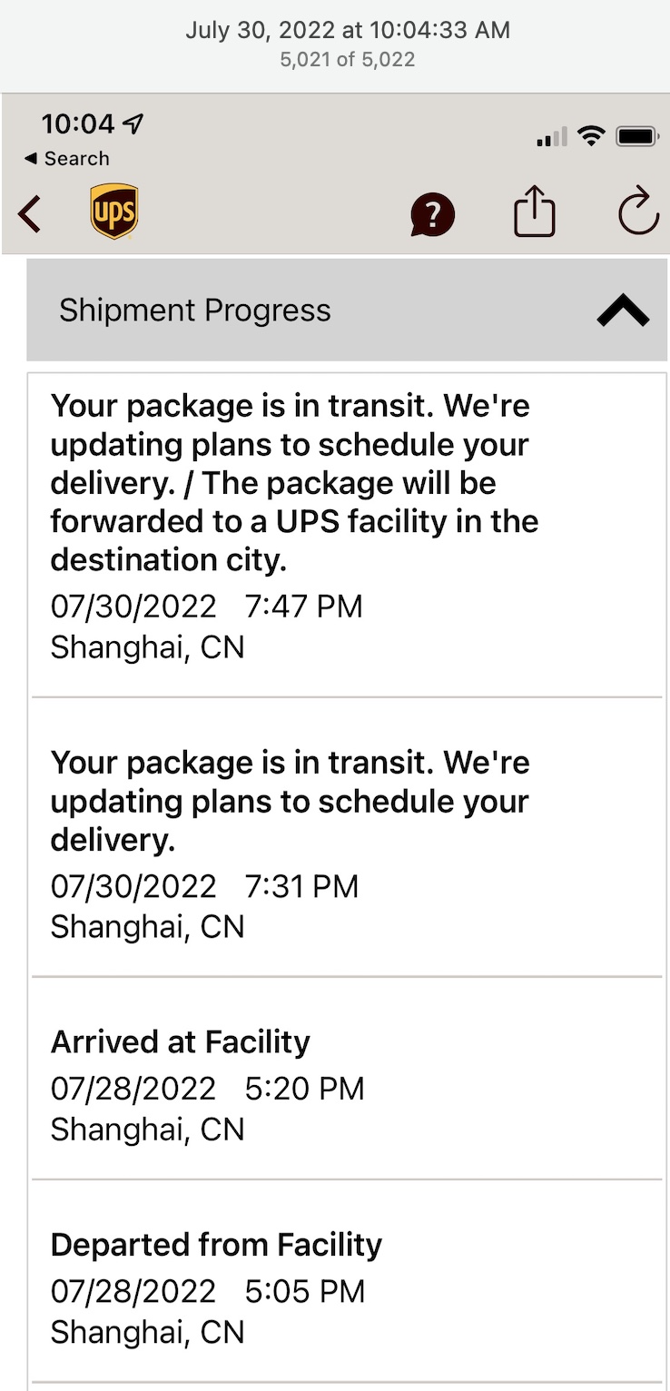 Mine arrived at 12:32pm !! Hope yours has too 😊Finally “Processed at Auckland” at 07:02 this morning woohoo! Just as predicted, there was no scan activity between “Picked up in Shanghai” and arriving/processing in Auckland.