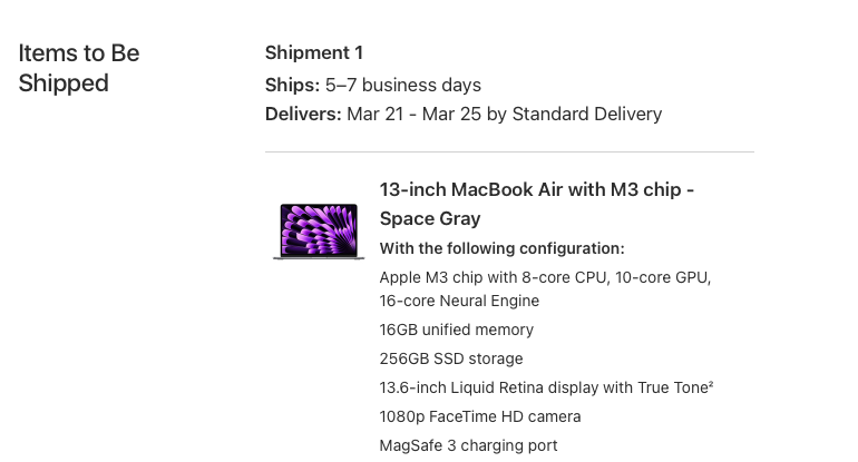 So you've bought every M-series MBA?Ordered my Midnight 15” M3 MBA 1Tb 16Gb as soon as preorders became available on the B&H website. Listing indicated it would ship March 8th (today launch day). Kept checking daily to see if perhaps it was gonna show some kind of early movement. Each day the listing still indicated a March 8th shipping date. That is, until today, when my order changed to Backordered. Seriously? No chat or CS available now till Sunday. Very disappointed to say the least. A bait and switch of sorts which almost begs me to cancel my order, but now most Mac resellers show a late March early April ship date. Had I known that B&H’s ship date was only listing the launch date, I would have looked elsewhere. Lesson learned. Was hoping for an early week delivery. Doesn’t help that I sold my M2 that I had to ship today or lose the sale. Back to my M1 MBA I guess.