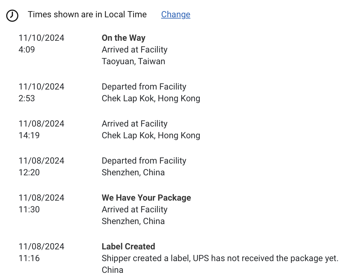Then that changed to Nov. 19-21, and now it's changed to Nov. 13, with UPS saying Nov. 11. Nice.