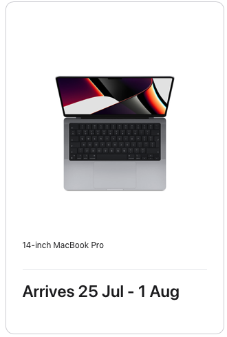 I got my mint condition 14" MBP (base model) from Swappa and it maybe took a week from order to delivery. Didn't have to deal with any of the long delays everyone who buys brand new is talking about. Oh, and I got 2.5 years of a 3 year Applecare+ warranty with the computer too, all for just $1950 (and that price includes tax).