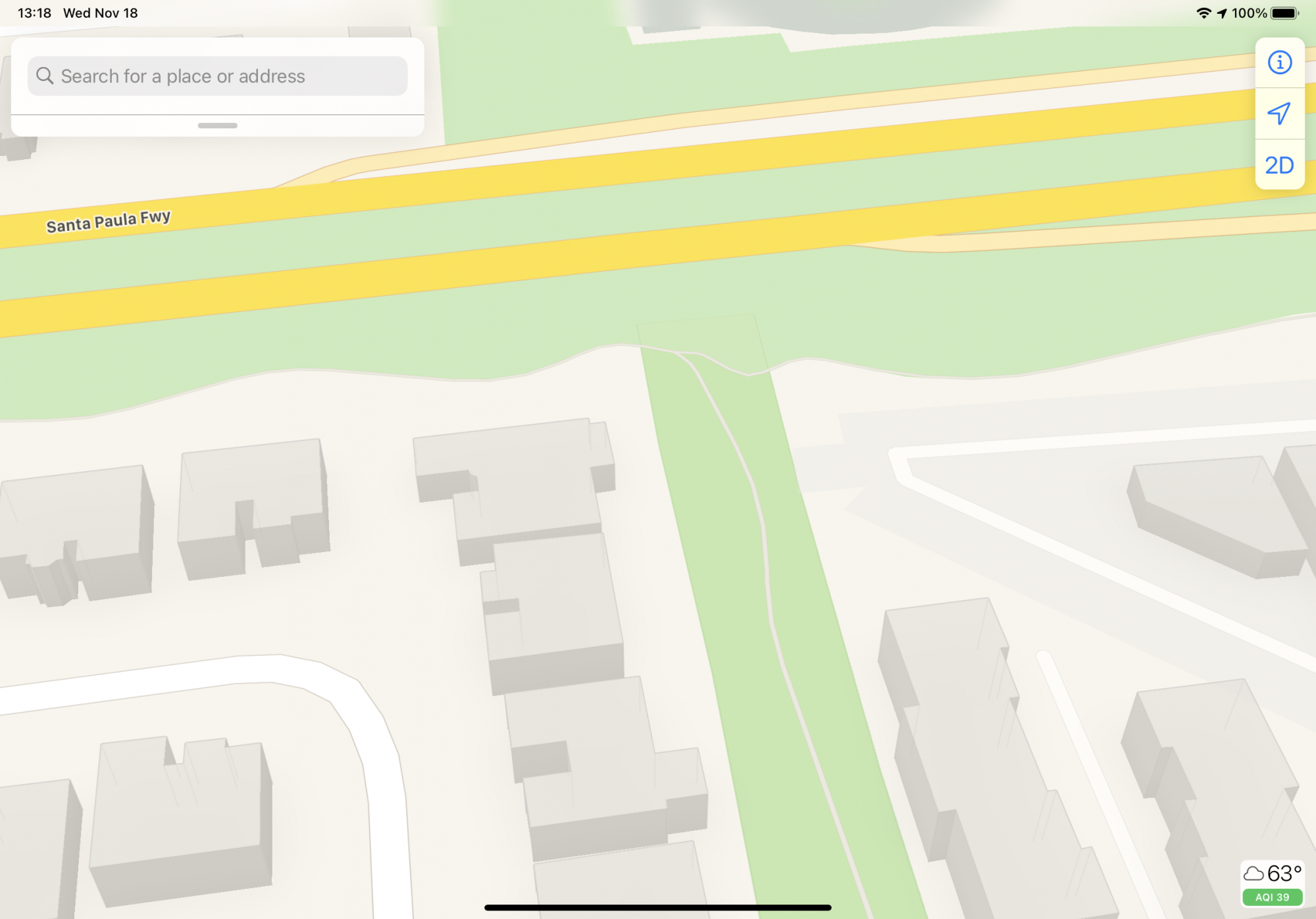 If you look in the satellite view, you see a thin park with a foot/bike path and the housing property lines/fences.