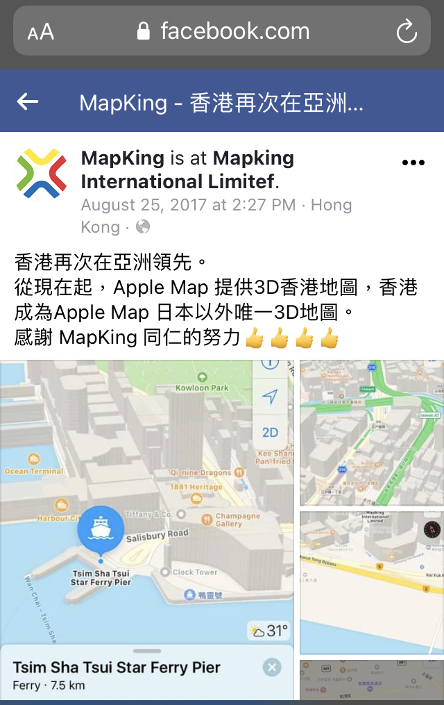 HK is also not close (as far as we know) to having Apple Map data.
